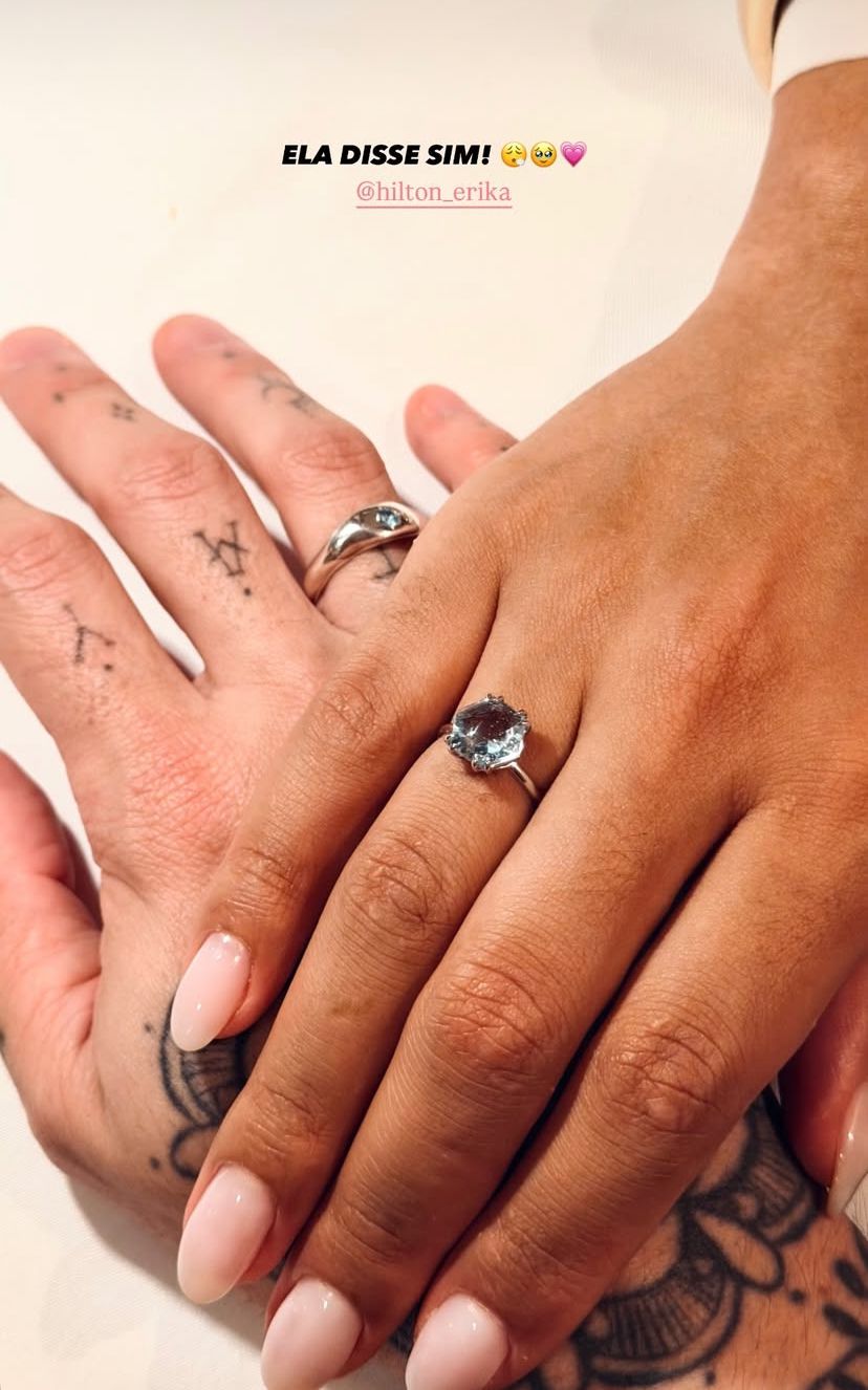 Daniel comemorou e compartilhou fotos do casal usando as alianças em seu perfil no Instagram. “Ela disse sim”, escreveu. Eles estão junto. desde 2023.