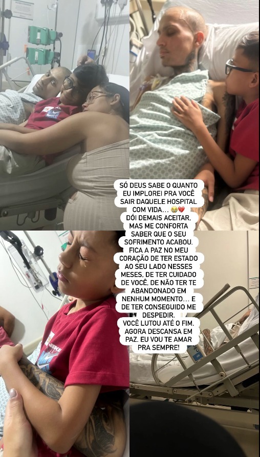 Ela relembrou os momentos vividos durante a internação e afirmou que esteve ao lado dele até o fim. “Só Deus sabe o quanto eu implorei pra você sair daquele hospital com vida… dói demais aceitar, mas me conforta saber que o seu sofrimento acabou”, escreveu.