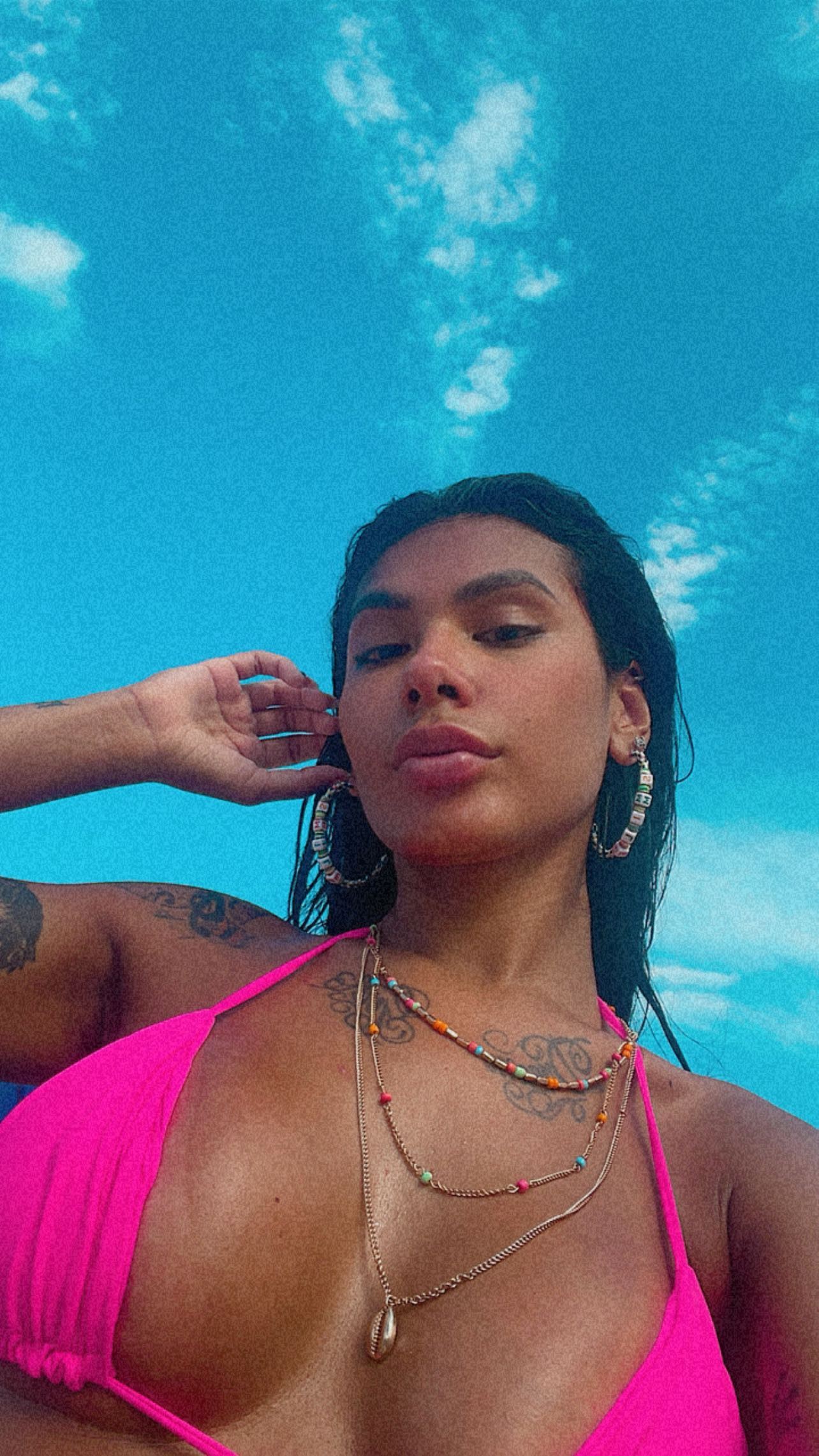 Enquanto Rafa apostou em um modelito verde-oliva, Pocah escolheu a cor pink pro seu conjuntinho. À beira-mar, a dupla tomou sol, comeu petiscos e ainda ouviu música na companhia de outros amigos.