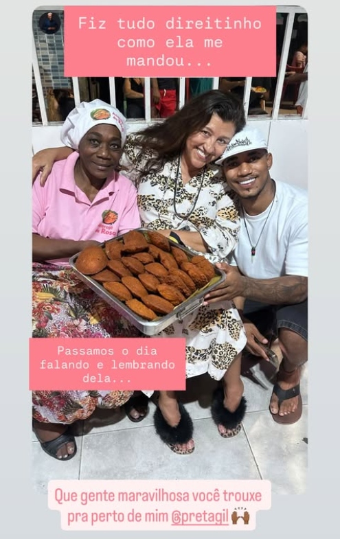 O encontro, que foi a realização de um desejo de Preta, contou com vários momentos ao lado da família do baiano. “Fiz tudo direitinho como ela mandou. Passamos o dia falando e lembrando dela”, contou. “Fizemos tudo do jeitinho que ela mandou”, escreveu O Kanalha.