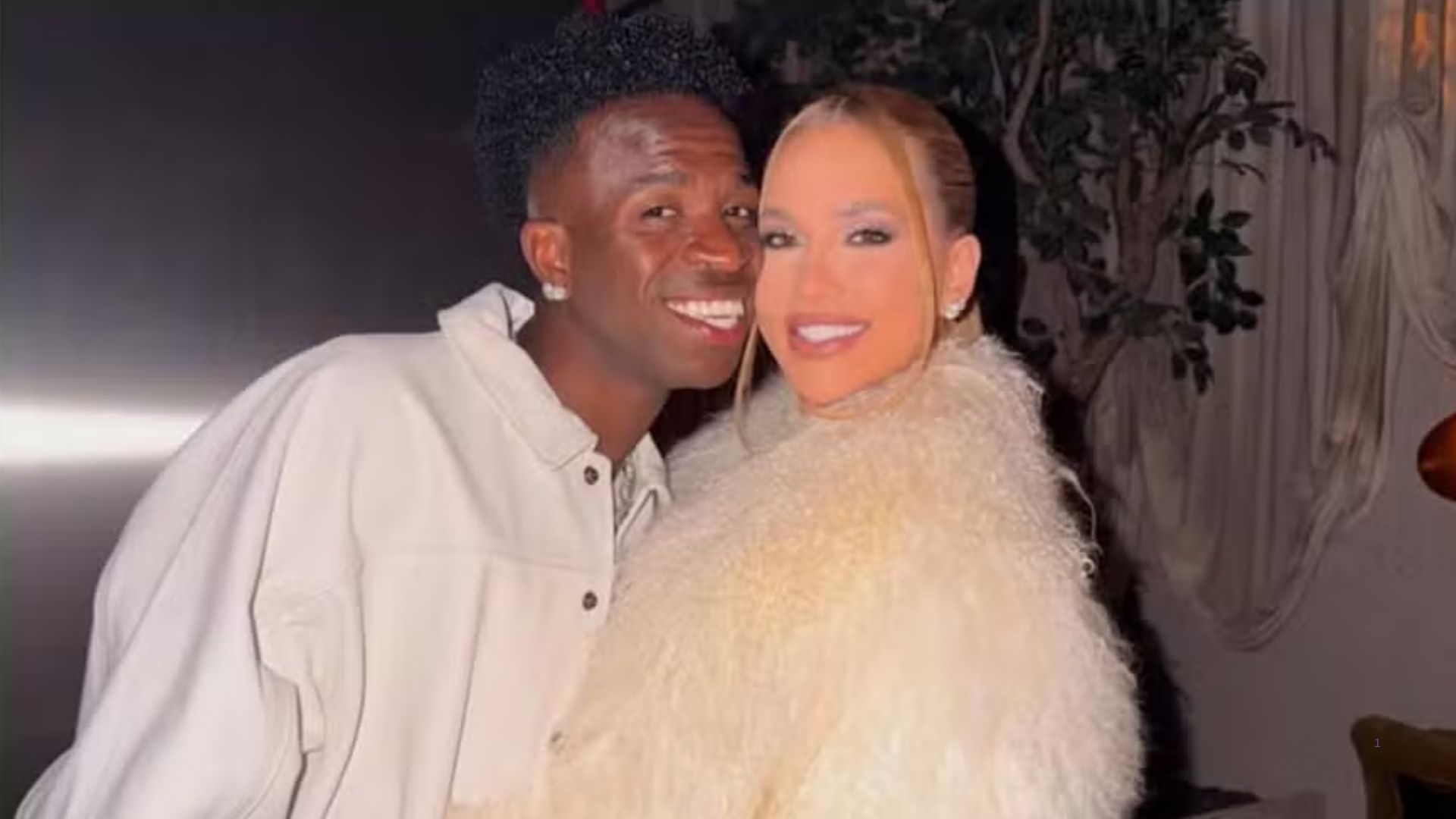 O atacante do Real Madrid também celebrou o momento especial ao lado da amada, com quem assumiu o relacionamento publicamente em outubro deste ano. Em clima de romance e seguindo a tradição do branco, o atleta resumiu o desejo para o novo ano: “2026 abençoado para nós”.