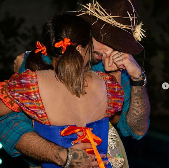 Os dois, que se vestiram de espantalhos, dançaram juntinhos e trocaram beijos na festa. "Fomos/somos muito felizes", escreveu ele na legenda. Anitta retribuiu com uma declaração de amor. "Somos. Te amo tanto!", escreveu a cantora.