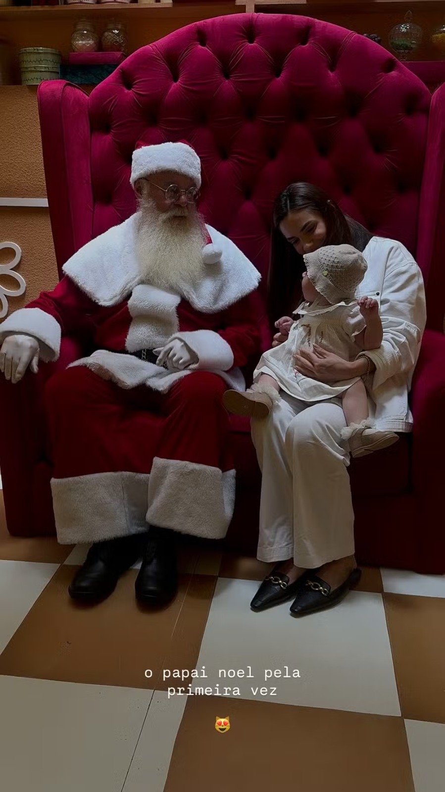 Serena, filha de Luan Santana, 34, e Jade Magalhães, 31, viveu um dos momentos mais especiais de sua primeira infância neste sábado (22). A pequena encontrou o Papai Noel pela primeira vez durante um passeio da família em um shopping. A cena foi registrada por Jade, que publicou o encontro nos Stories com a legenda: “O Papai Noel pela primeira vez”.