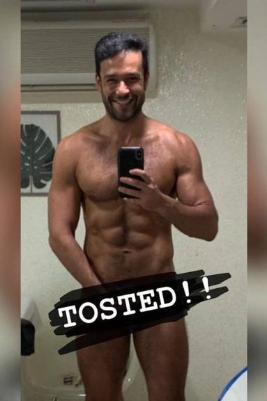 Sérgio Marone fez a temperatura subir nas redes sociais. Em clique postado nos Stories do Instagram, o galã surgiu completamente nu. Ele mostrou o seu abdômen definido enquanto colocava a mão nas partes íntimas.