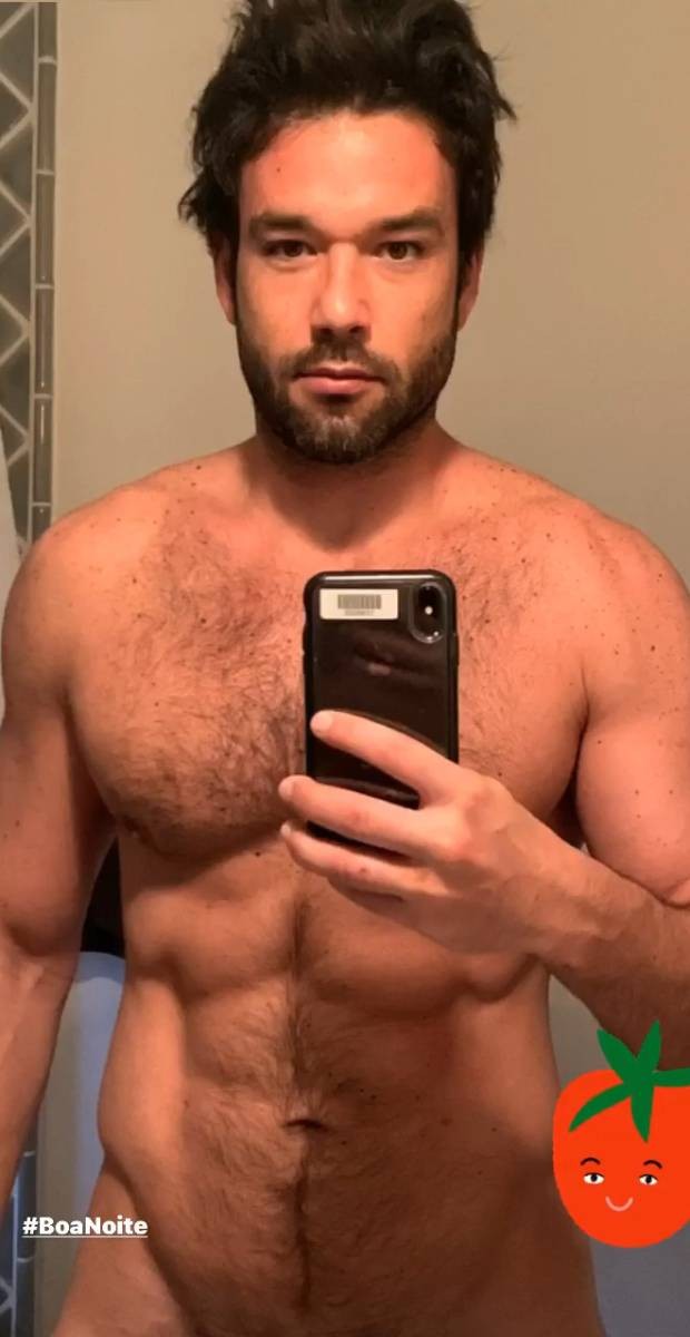 "Boa noite", limitou-se a legendar o ator de 39 anos, que também estava descabelado no clique e exibiu sua barriga malhada.