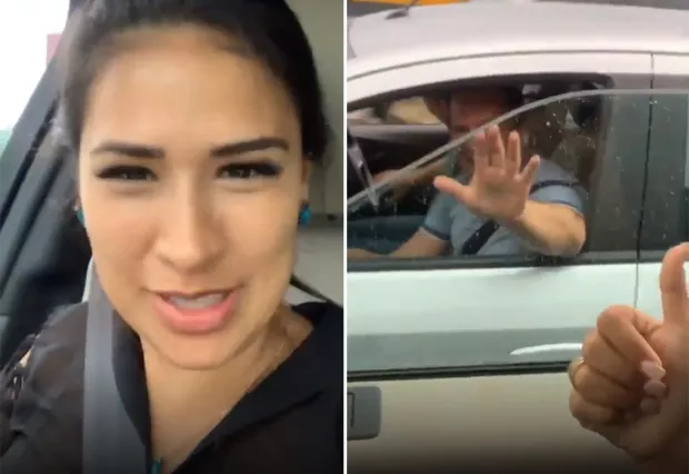"A bonita passa no pedágio só com cartão, os amigos pagam o pedágio. Valeu, coleguinha! Estamos juntos", disse ela em seu Stories, ferramenta do Instagram.