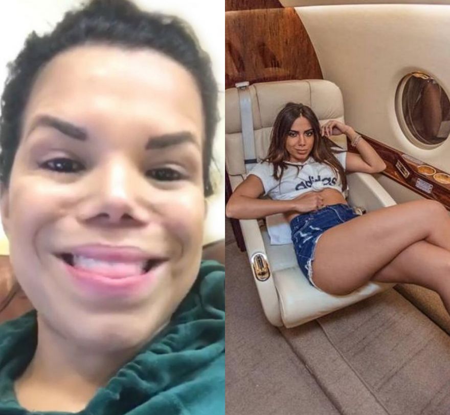 Image captionEm seguida, ela gravou um vídeo no qual dá gargalhadas ao imaginar a morte da cantora. "O cara fez um som, subiu num jatinho privado uma vez e morreu. Anitta fez vários sons, já subiu em jatinhos várias vezes, qual será a vez dela?".