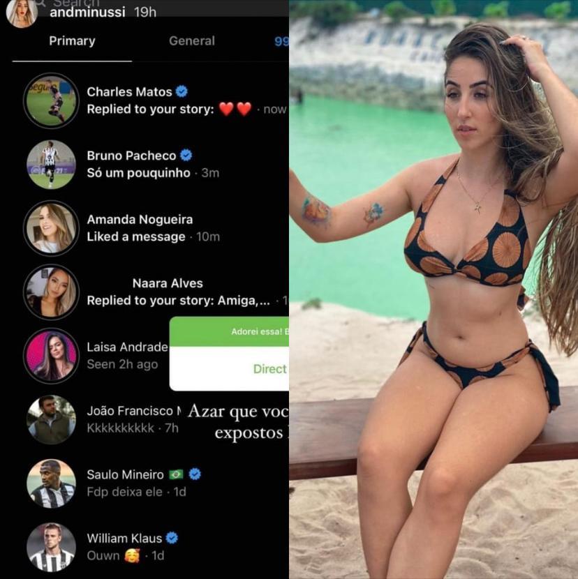 Nomes como de Bruno Pacheco, Saulo Mineiro e William Klaus apareceram na print das conversas de Andressa no Instagram. "Azar que vocês sendo expostos kkk", publicou a loira.