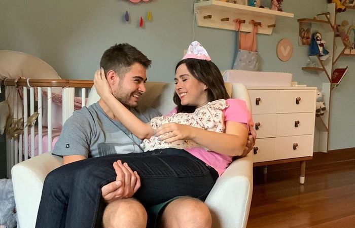 No clique, compartilhado em seu Instagram, a apresentadora aparece coladinha com o marido, o ator Rafa Vitti (25) e a filha do casal, Clara Maria (1).