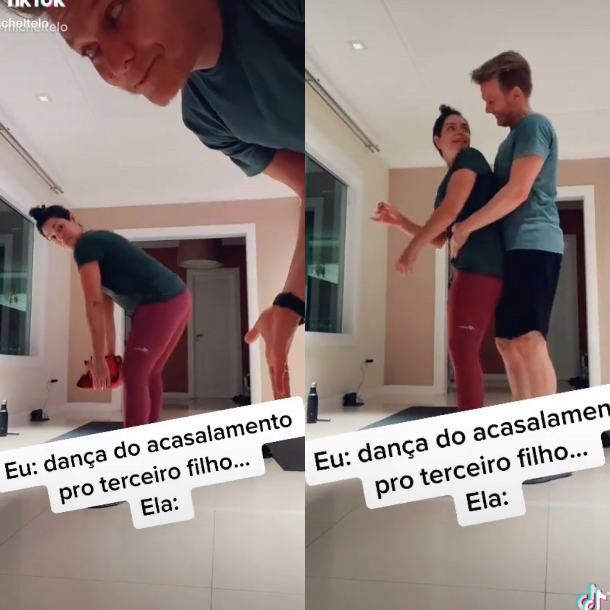 Participando de uma trend viral nas redes sociais, Michel Teló divertiu seus seguidores com vídeo compartilhado em seu perfil do Instagram nesta terça-feira (24). No registro, com uma música ritmada de fundo, o cantor dança ao som da canção e escreve: "quando eu faço a dança do acasalamento para o terceiro filho".