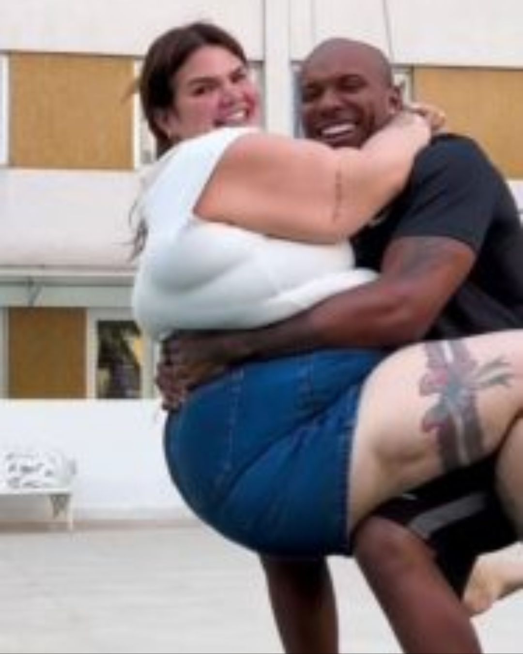 Thais Carla usou as redes sociais para compartilhar um momento fofo ao lado do marido e das filhas. Após perder 70 kg desde que realizou uma cirurgia bariátrica, a influenciadora foi carregada no colo pelo amado pela primeira vez, em uma cena cheia de emoção.