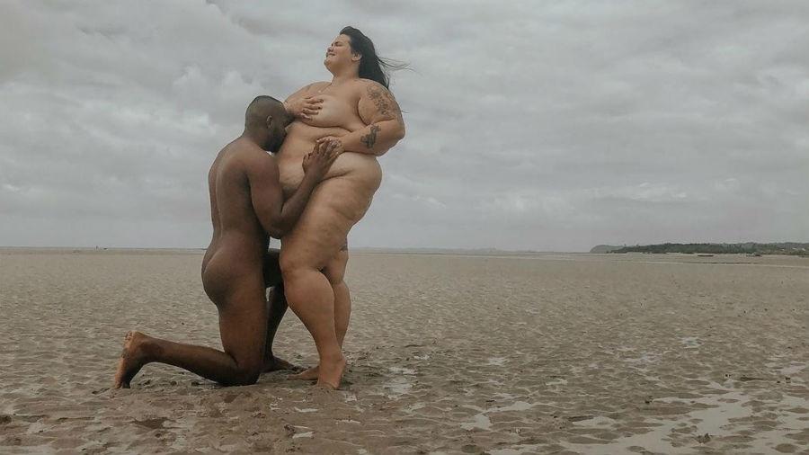 Grávida, de quatro meses, Thais Carla, que ficou conhecida como a primeira bailarina plus size de Anitta, fez um ensaio nu ao lado do marido, o fotógrafo Israel Reis. A dançarina e influencer, de 28 anos, publicou um clique no Instagram, em que os dois aparecem pelados na praia, e falou sobre a gestação inesperada. As informações são do UOL.