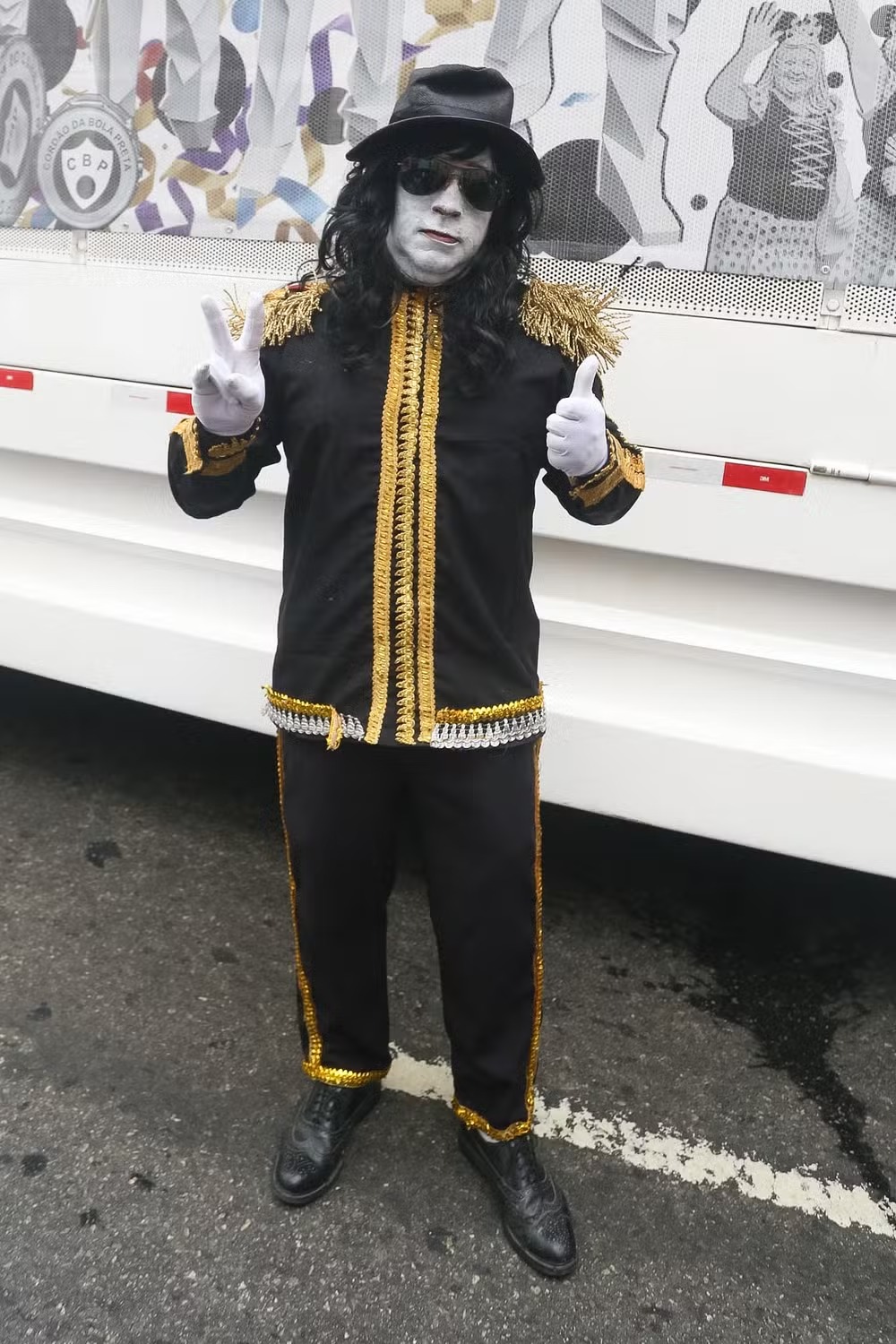 Com produção completa, o humorista ficou praticamente irreconhecível: rosto maquiado, peruca, óculos escuros, chapéu, luvas e um figurino preto com detalhes dourados, inspirado no estilo marcante do Rei do Pop. A caracterização rendeu registros e comentários de foliões e seguidores nas redes.