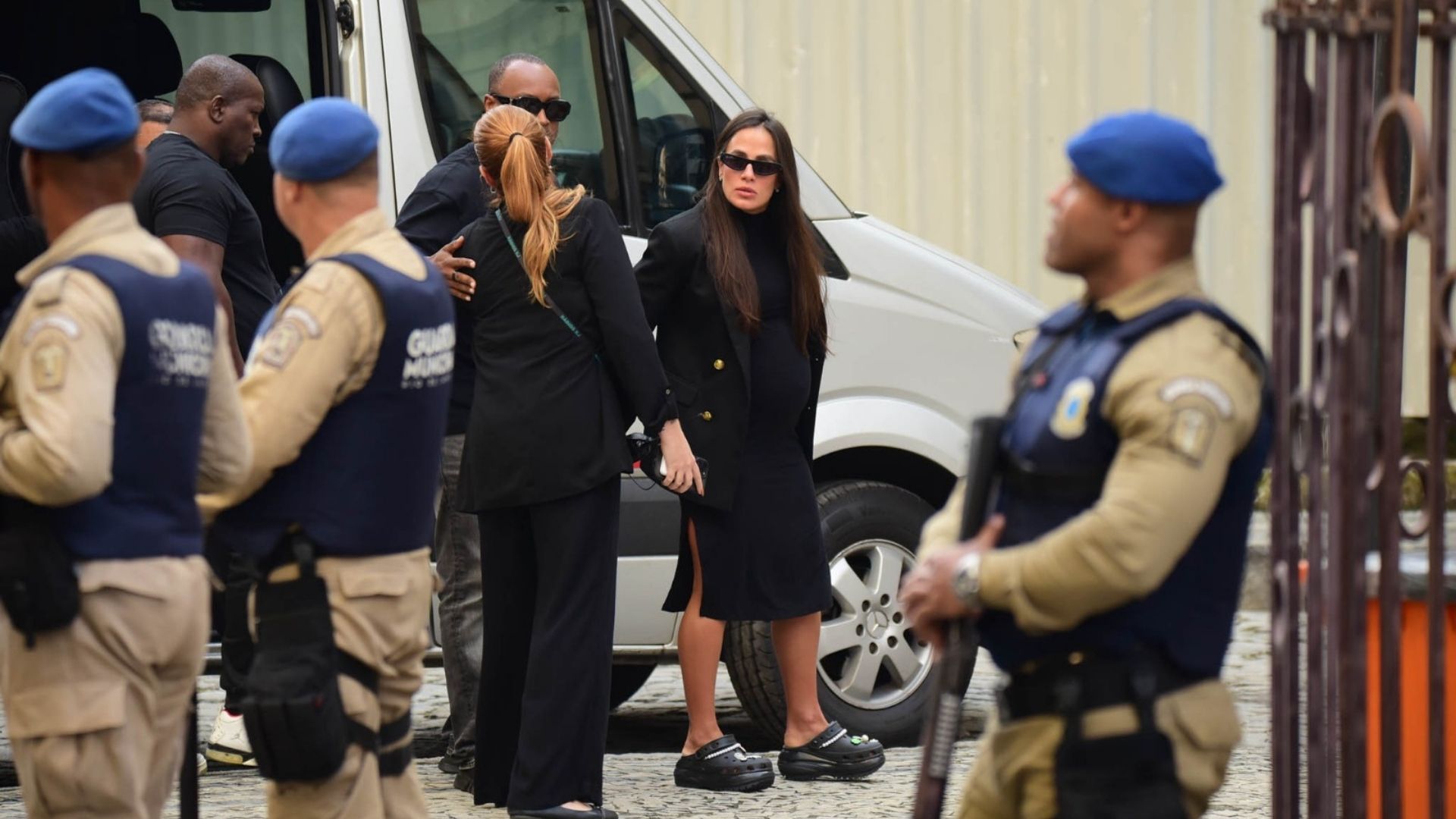O cantor Thiaguinho chegou ao velório de Preta Gil acompanhado de Carol Peixinho, os dois desceram de uma van, vestidos de preto e com óculos escuros, o cantor estava visivelmente abalado pela perca da amiga, o pagodeiro ficou visivelmente comovido ao se aproximar do caixão da amiga.