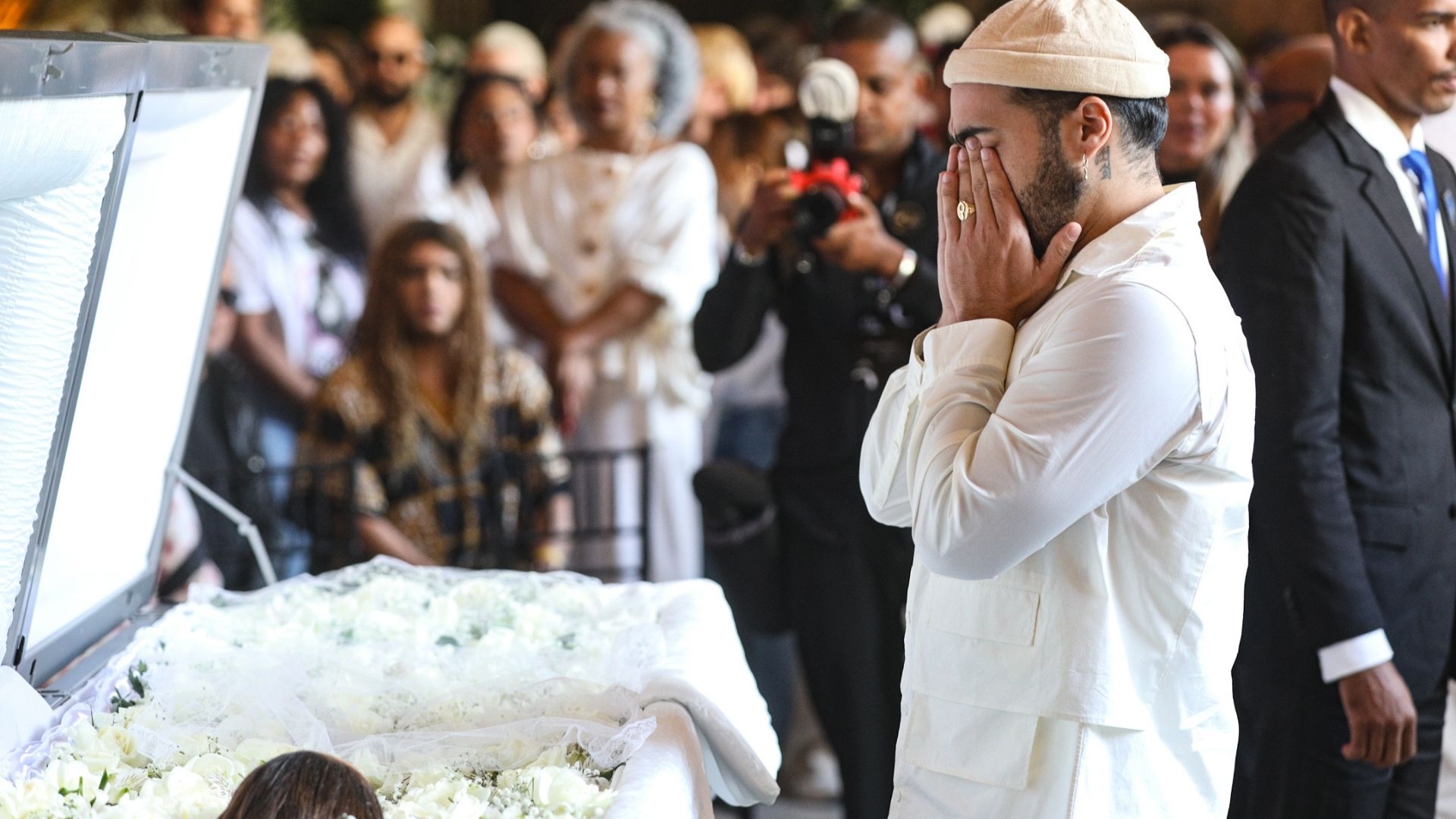 Thiaguinho emocionado no caixão de Preta Gil — Fotos: Victor Chapetta - Agnews