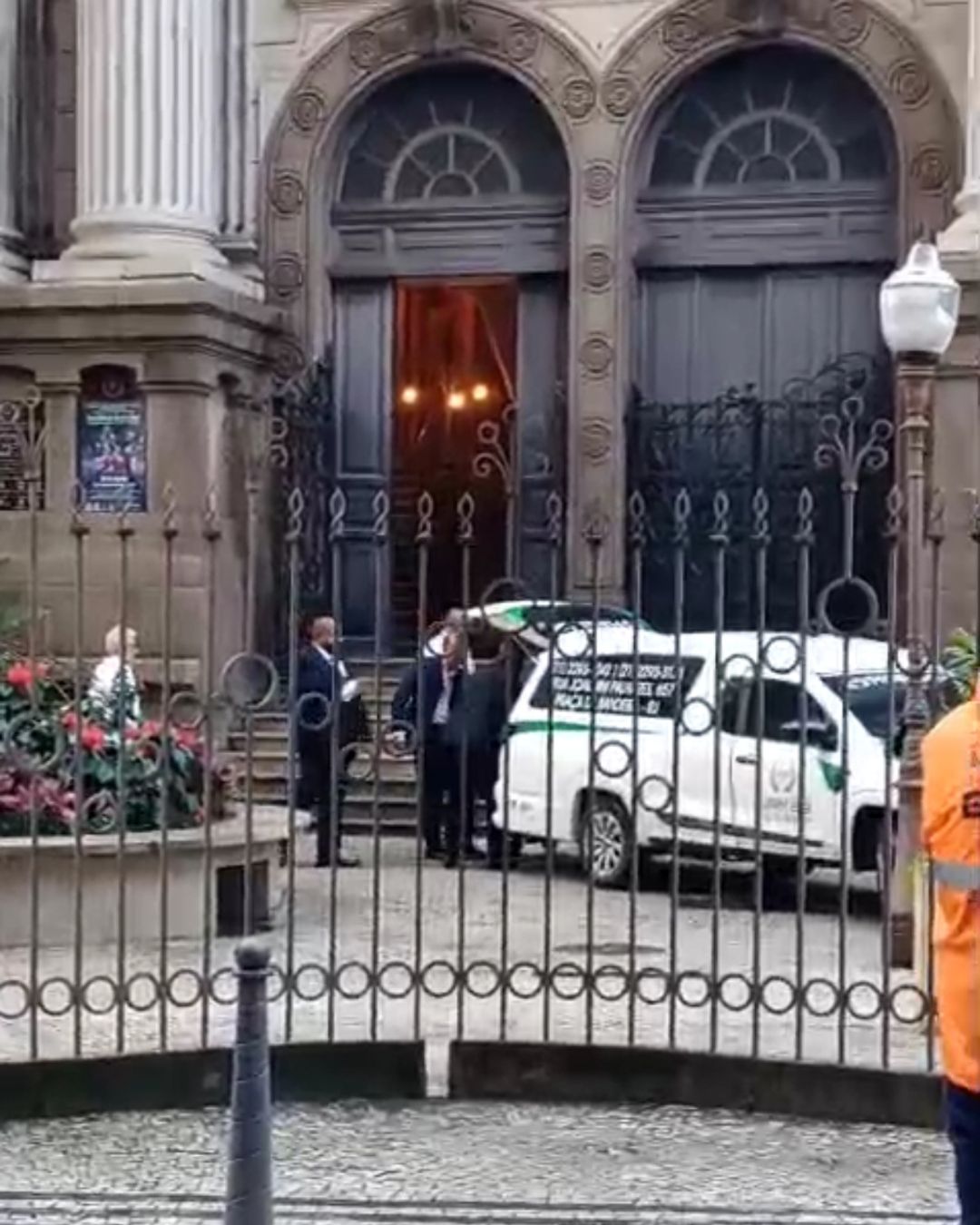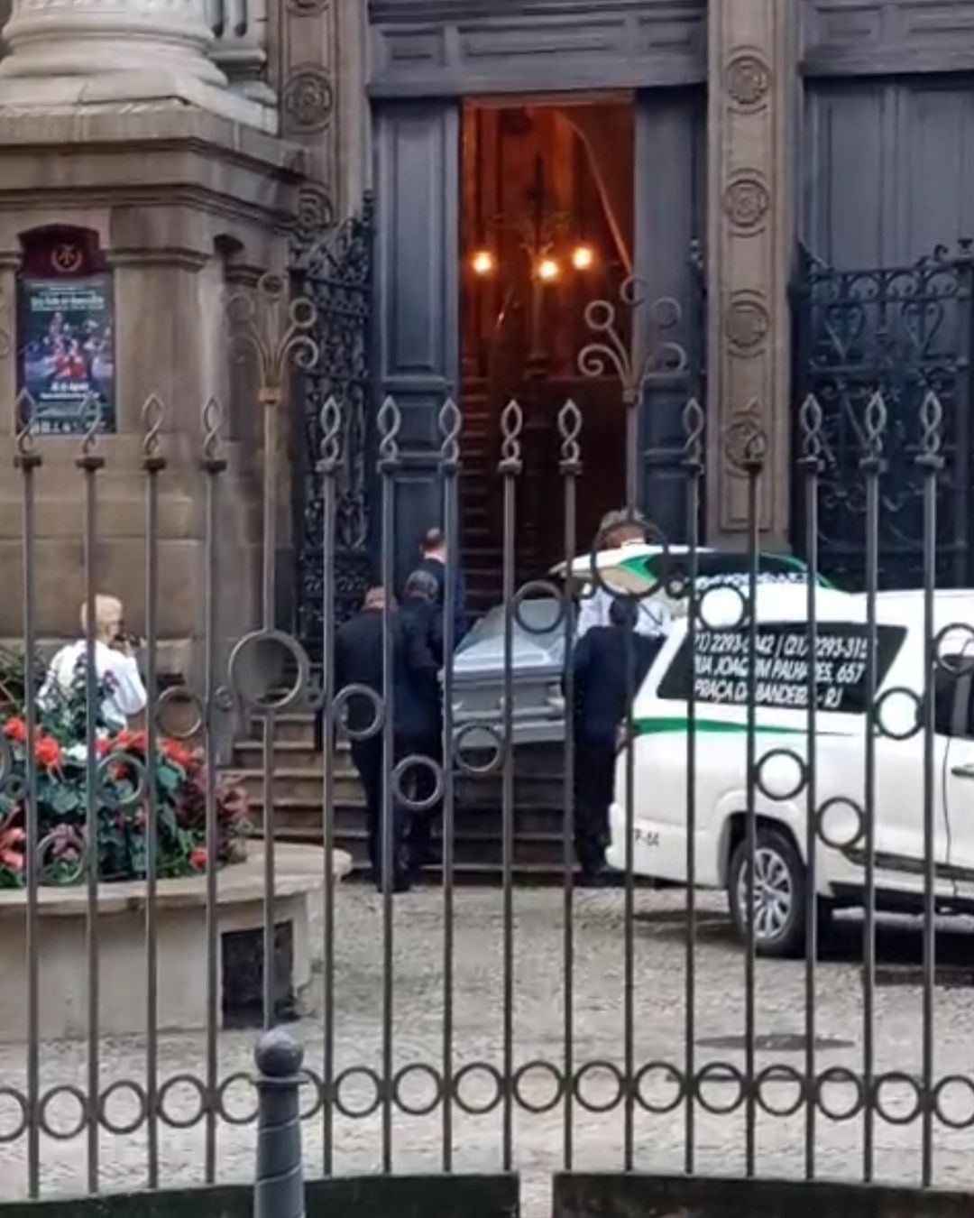 Nas imagens, é possível ver o caixão prateado e brilhante sendo retirado do carro funerário e levado para dentro do teatro, onde familiares, amigos e pessoas próximas poderão prestar suas homenagens.
