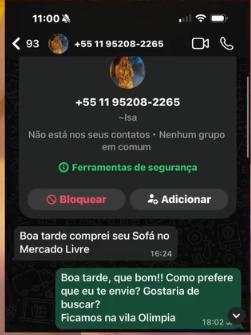Contato de um suposto interessado na compra. Foto: Reprodução
