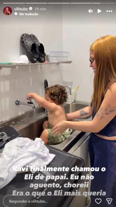 Nas redes sociais, Viih contou que não conseguiu segurar as lágrimas diante da cena. “Ravi finalmente chamou o Eli de papai. Eu não aguento, chorei. Era o que o Eli mais queria”, relatou. Além de Ravi, o casal também é pai de Lua, de 2 anos.