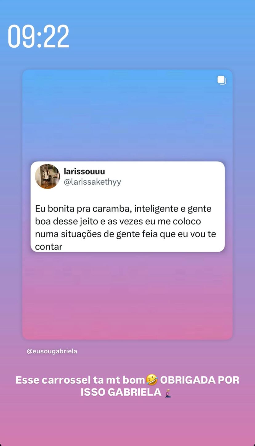 A publicação aconteceu pouco depois de Virginia compartilhar uma mensagem reflexiva em seu Instagram. No post compartilhado pela influenciadora estava a seguinte mensagem: “Eu bonita pra caramba, inteligente e gente boa desse jeito e às vezes eu me coloco numa situação de gente feia que eu vou te contar”. Ela também completou: “Adorei esse carrossel”.