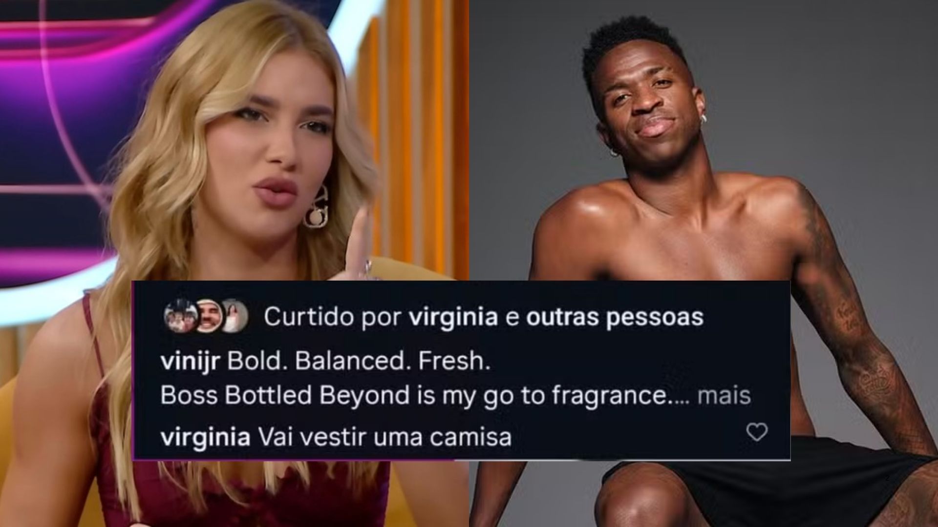 Virginia Fonseca divertiu os internautas nesta quinta-feira (20), ao comentar em um ensaio publicado por Vini Jr. no Instagram, onde o jogador do Real Madrid aparecia sem camisa em uma campanha de perfume. A apresentadora, que reagiu ao post por ciúmes bem-humorados, explicou sua postura diante do relacionamento à distância, assumido por ambos no fim de outubro, e mostrou como lida com a exposição nas redes sociais.