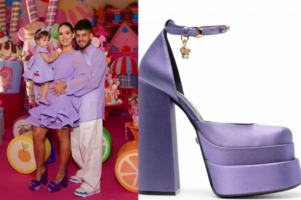 Virginia Fonseca e Zé Felipe celebraram o aniversário de um aninho da filha do casal, Maria Alice. A festa acontece em Goiânia (GO) com o tema de “doces”. Além da decoração milionária e os convidados famosos, o que chamou atenção dos milhares de seguidores da influencer foi a sandália roxa que ela escolheu pra festa.
