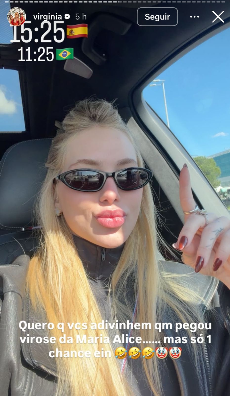 Virginia Fonseca, de 26 anos, revelou nesta quinta-feira (12) que foi diagnosticada com uma virose durante uma viagem à Espanha. De acordo com a apresentadora, quem teria transmitido o vírus foi a filha mais velha, Maria Alice, de quatro anos.
