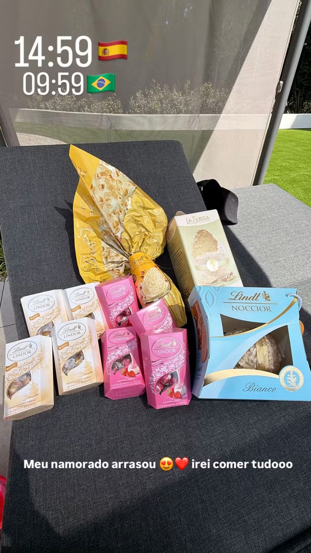 A influenciadora compartilhou o momento com entusiasmo e destacou o carinho recebido. “Meu namorado arrasou, irei comer tudooo”, escreveu ela na legenda, adotando um tom leve e apaixonado, mesmo diante das especulações recentes envolvendo o casal.