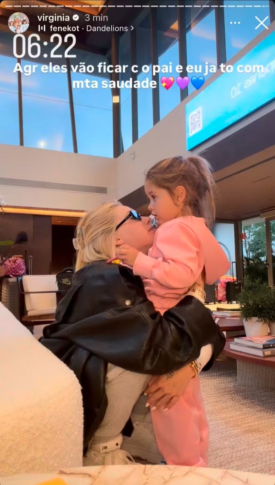 Ao chegar ao país, Virginia anunciou que os filhos ficarão com o ex-companheiro Zé Felipe, de 27 anos. “Agora eles vão ficar com o pai e eu já tô com muita saudade”, escreveu ela em seu Instagram.
