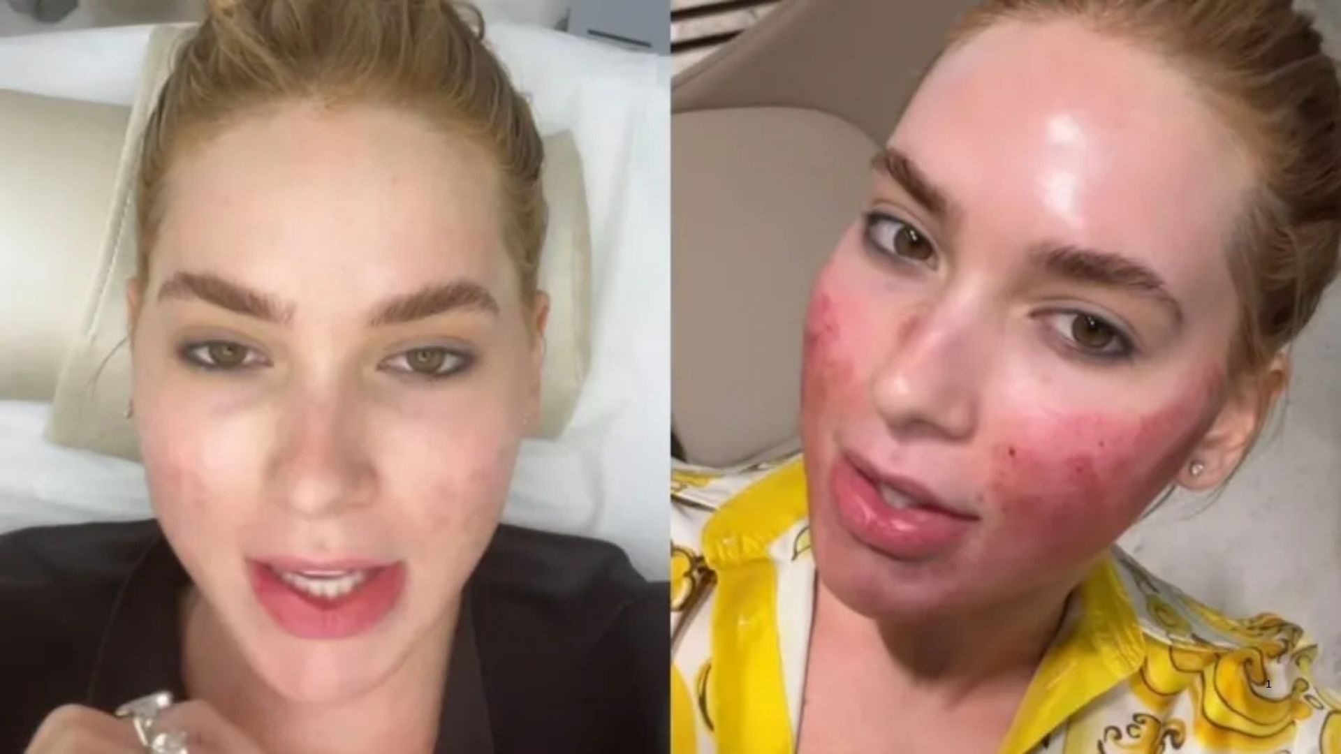 Com o rosto visivelmente vermelho, a influenciadora tranquilizou os fãs e explicou que a reação é normal no pós-procedimento. "Meu rosto vai ficar assim agora por pelo menos 24 horas.", afirmou, reforçando que o efeito é temporário.