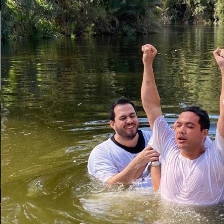 O cantor Wesley Safadão compartilhou, na sua conta no Instagram, registros do seu batismo nas águas no rio Jordão, em Israel.