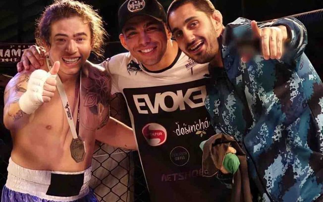 Ao lado de Lucas Mineiro, atleta do Brave CF, e seu treinador Caio Franco, Whindersson projeta seis edições- Foto: Reprodução/Instagram