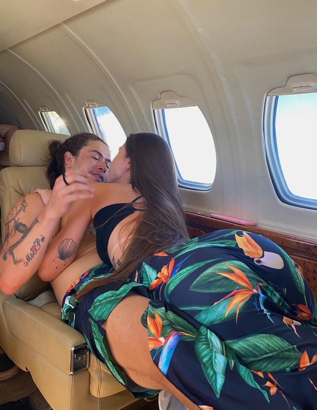 O casal posou em clima de romance durante uma viagem a bordo do jatinho particular do piauiense. '