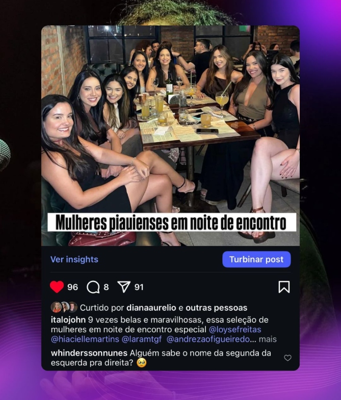 Na semana passada o humorista causou um alvoroço na web ao demonstrar interesse em uma jovem piauiense. Ele comentou na publicação do perfil Inside by Italo John. “Alguém sabe se nome da segunda da esquerda pra direita?”, questionou o piauiense.