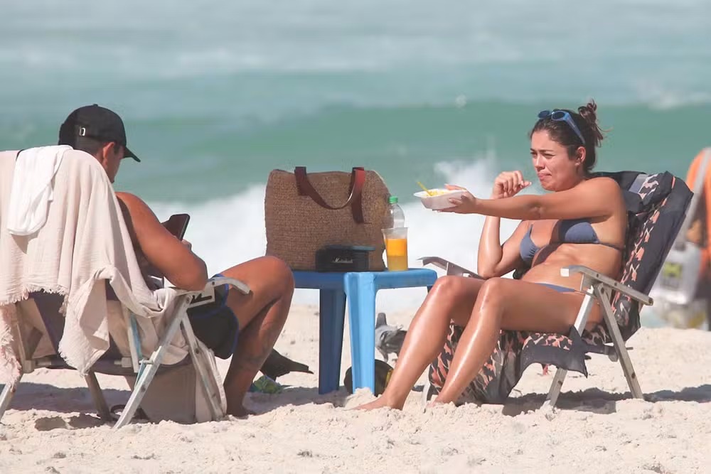 Os dois trocaram carinhos, passaram bronzeador um no outro e desfrutaram de um banho de mar. Em clima descontraído, o casal ainda foi visto comprando milho verde de um vendedor ambulante.