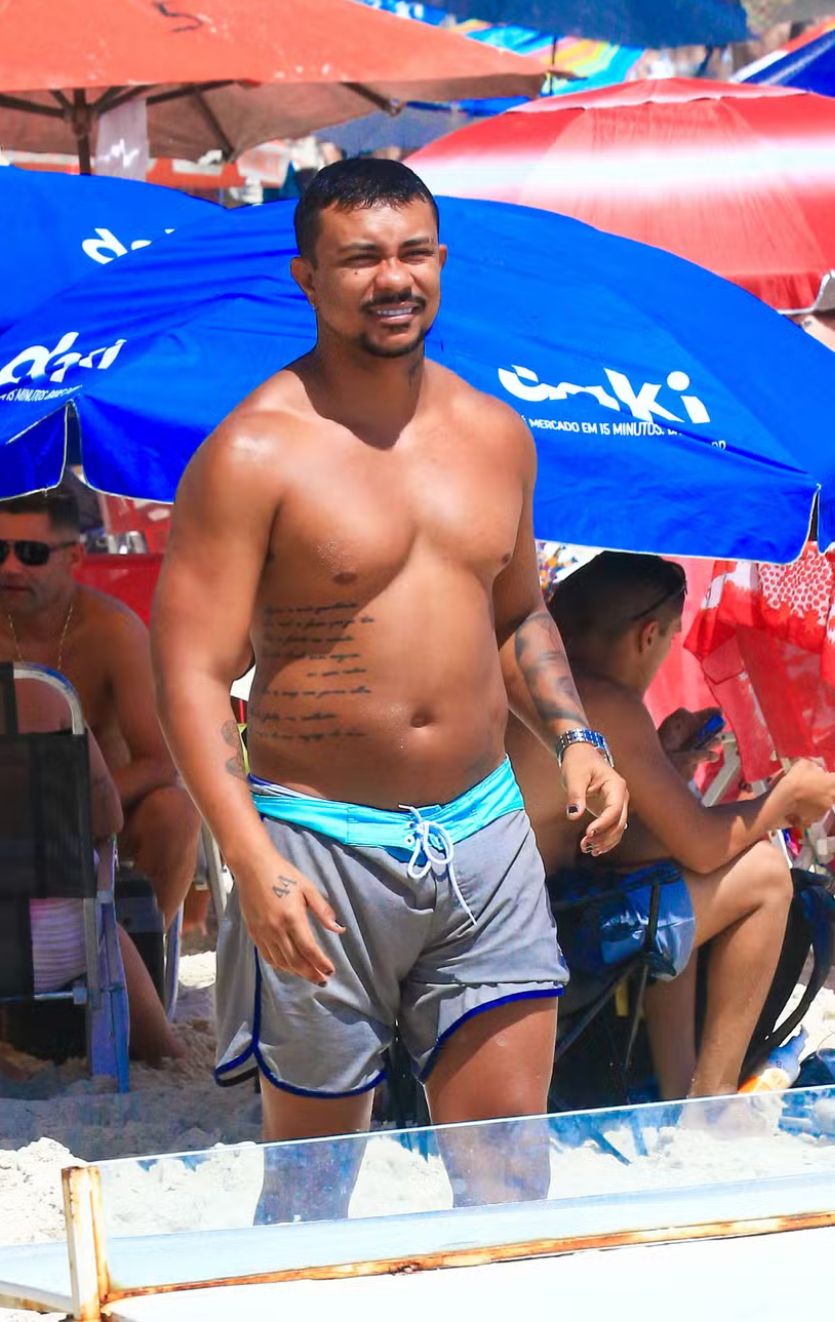Dessa vez, Xamã estava sozinho, mas sempre é clicado na praia com sua namorada, Sophie Charlotte. Os dois se conheceram durante as gravações do remake de “Renascer”, da TV Globo.