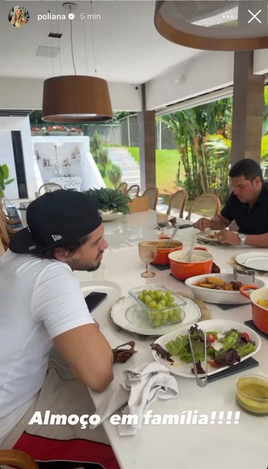Zé Felipe foi visto reunido com a família após anunciar o término do relacionamento com Ana Castela. O momento foi compartilhado por Poliana Rocha, mãe do cantor, que publicou um vídeo do almoço em família nas redes sociais.