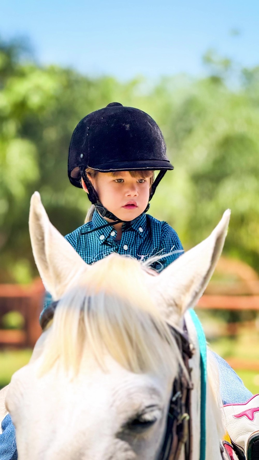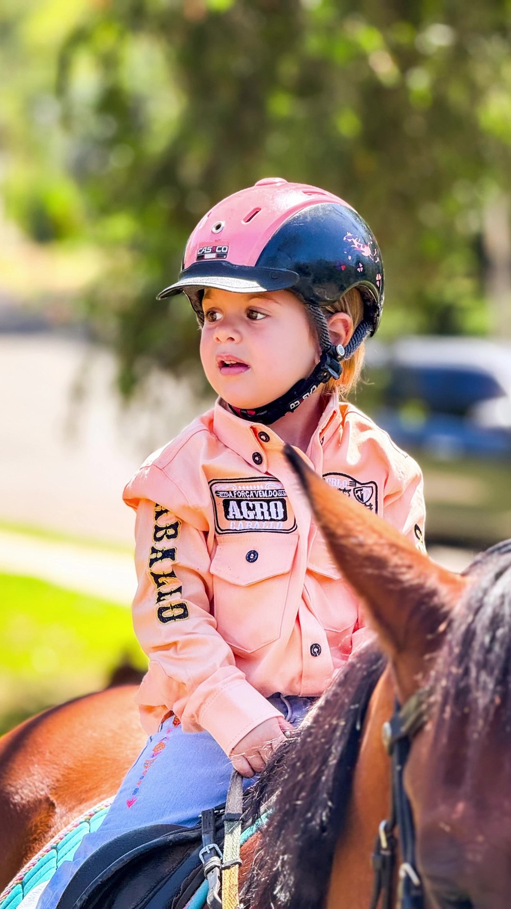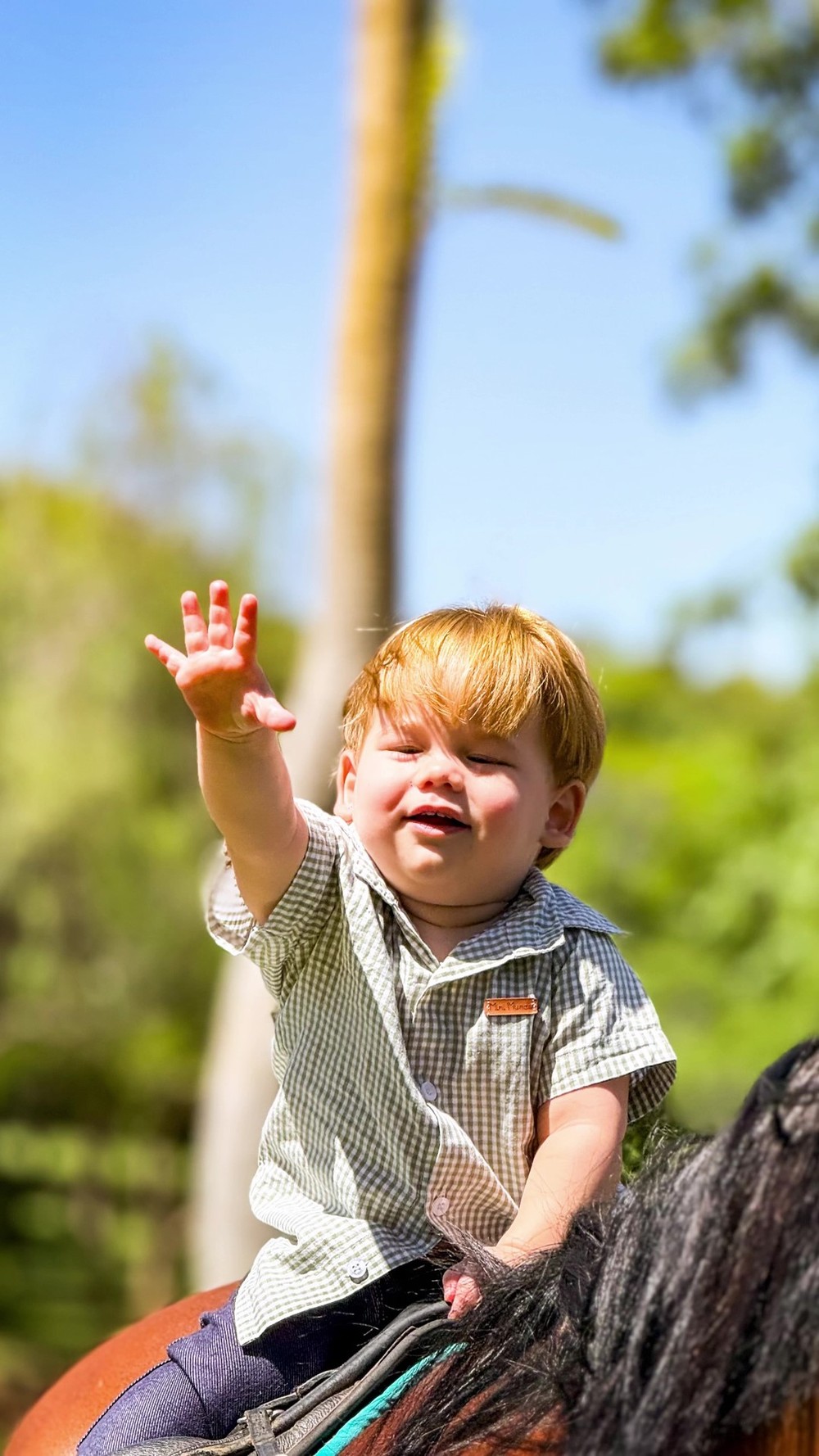 Nas publicações, o filho caçula de Leonardo aparece interagindo com as crianças, que passearam a cavalo, se divertiram na piscina e tiveram momentos de carinho entre si. Maria Flor foi registrada fazendo carinho no irmão caçula, José Leonardo, de 1 ano.