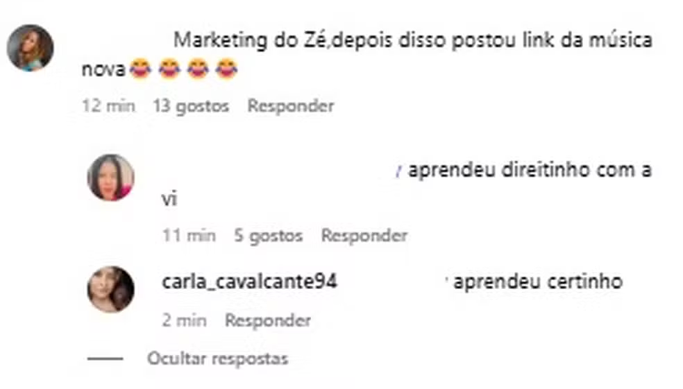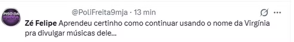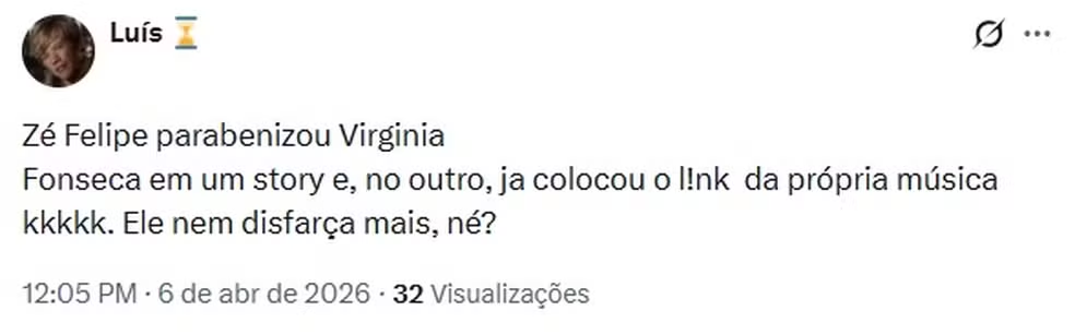 No entanto, minutos depois da homenagem, Zé Felipe publicou conteúdos divulgando sua nova música, “Ruim de Coração”, o que gerou repercussão negativa entre os seguidores. Internautas acusaram o cantor de aproveitar o engajamento do aniversário da influenciadora para promover o lançamento. “Marketing”, comentou um usuário. “Ele nem disfarça mais”, escreveu outro.