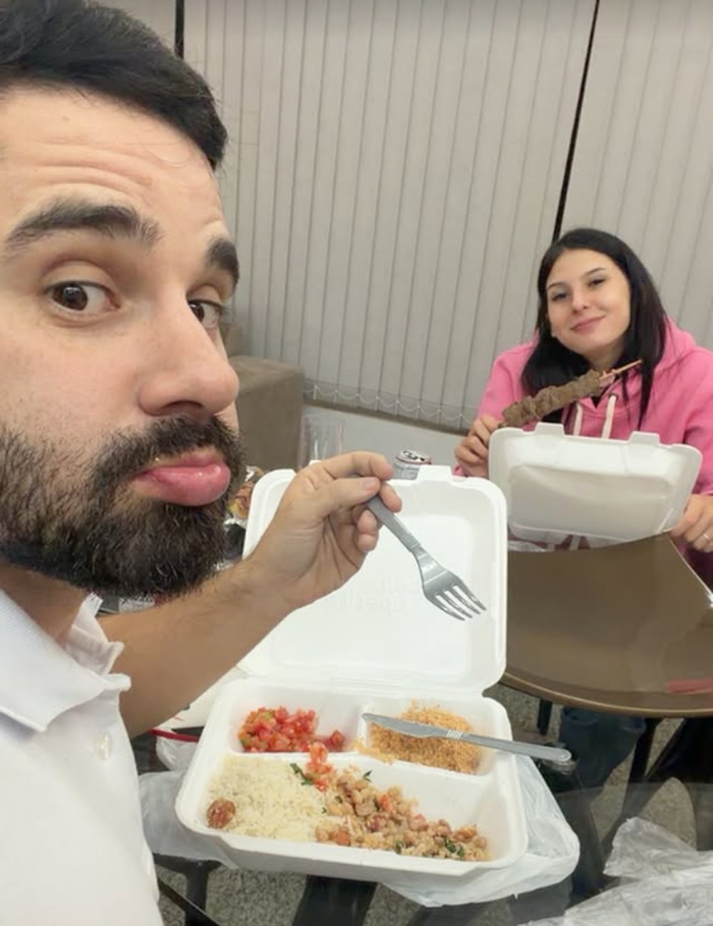Ana Castela come espetinho com Odorico Reis antes de encontrar com Zé Felipe — Foto: Reprodução/Instagram