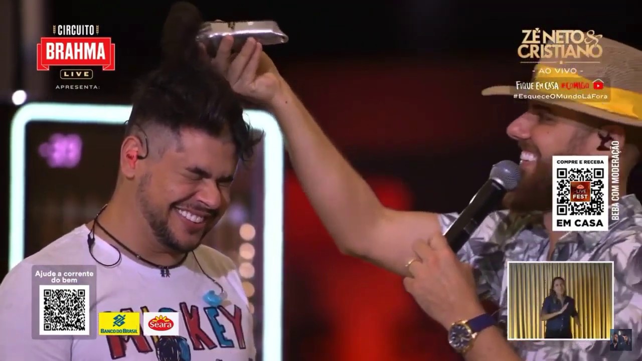 Zé Neto raspa cabelo de Cristiano durante live para comemorar doações