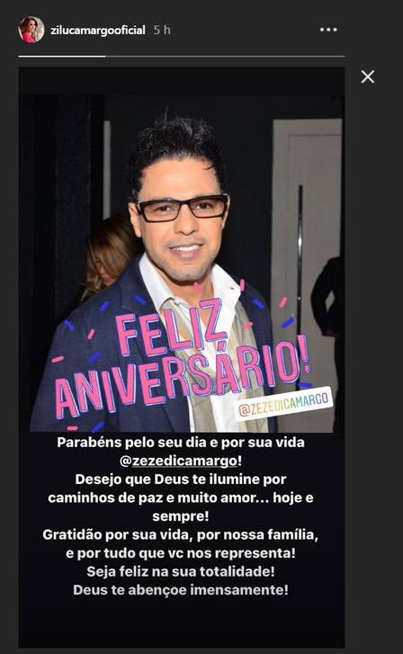 “Parabéns pelo seu dia e por sua vida, Zezé! Desejo que Deus te ilumine por caminhos de paz e muito amor... Hoje e sempre! Gratidão por sua vida, por nossa família, e por tudo que você nos representa! Seja feliz na sua totalidade! Deus te abençoe imensamente!”, afirmou ela.