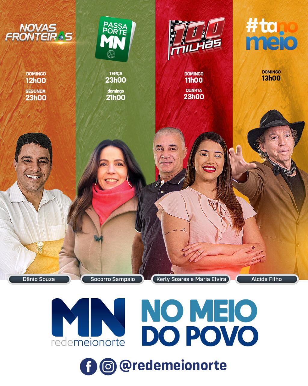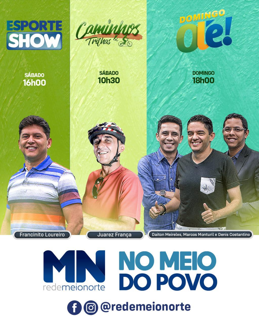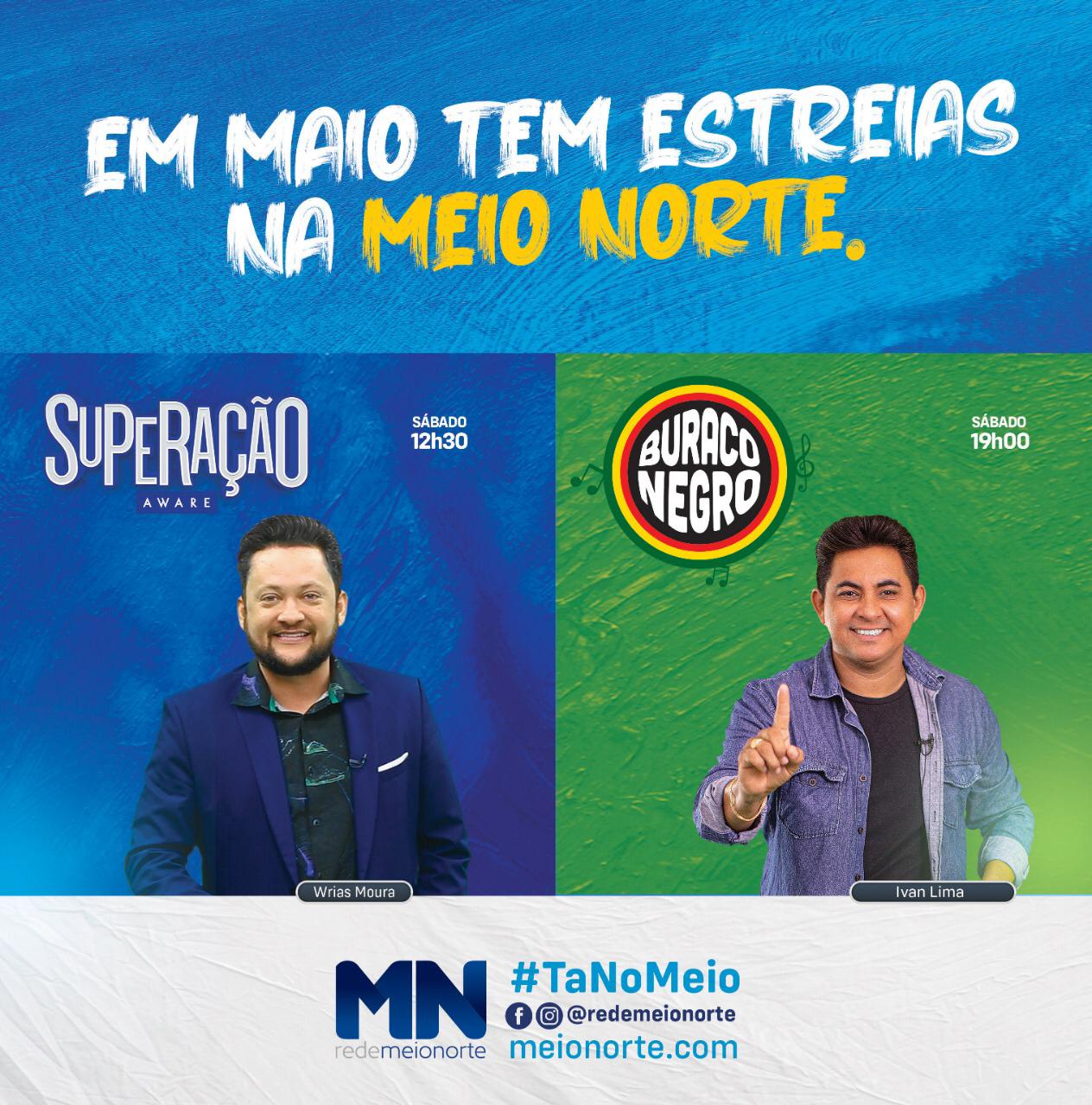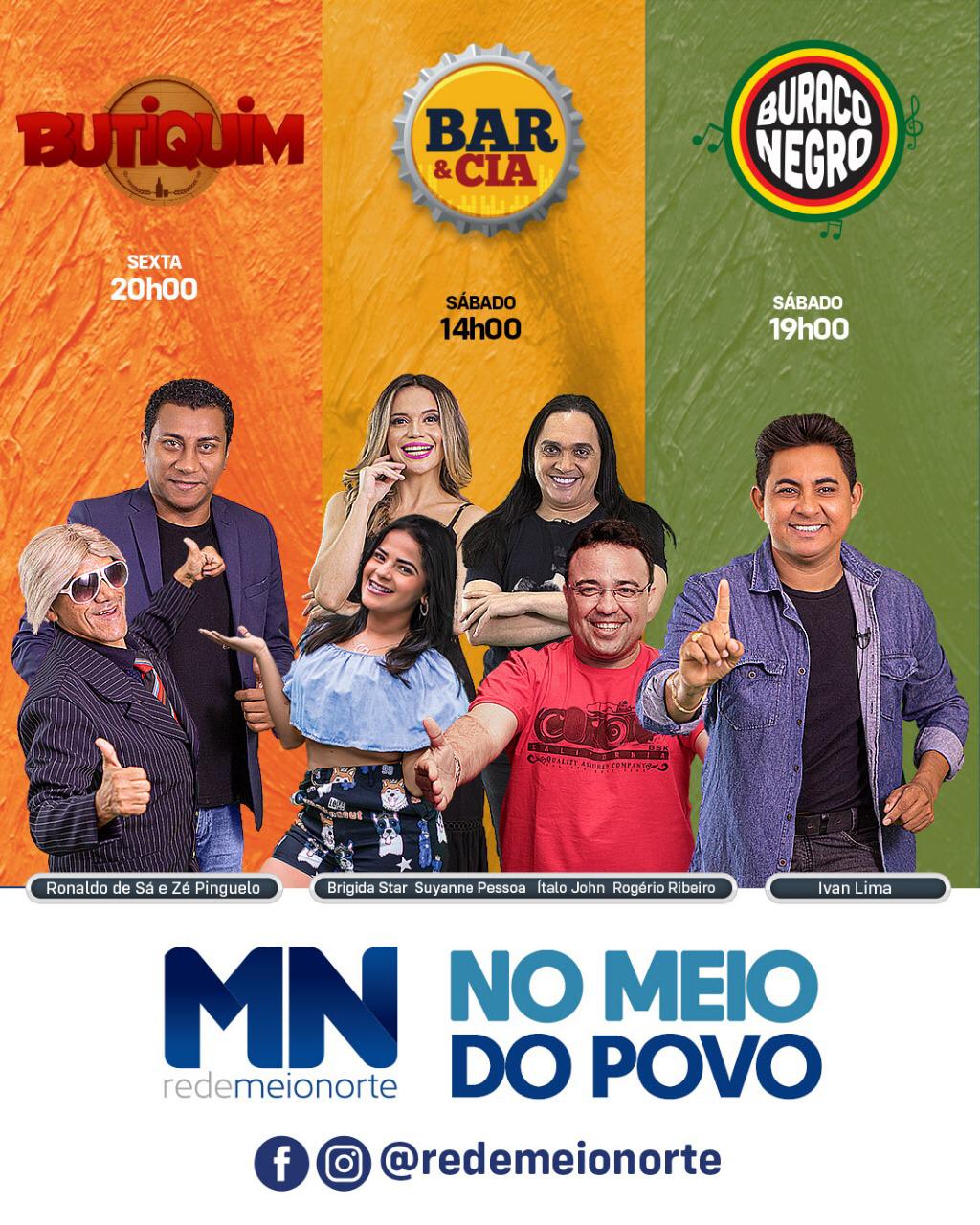 Das 17h às 18h, outro programa de sucesso que ganhou novo horário e passa a ser transmitido ao vivo é o Na Parada, com Stefhania Fernandes. De 18h às 19h, mais novidades na telinha da Rede Meio Norte: Amadeu Campos estreia a live “Jogo Aberto MN”, que vai ao ar pelo canal no YouTube “Programas Meio Norte”, sendo transmitido também pelo Canal 7 e vai debater os assuntos da atualidade. A ideia é receber um convidado especial a cada sábado, com a participação de três jornalistas interagindo e Amadeu como mediador. Já das 19h às 21h, o jornalista Ivan Lima vai estrear o programa Buraco Negro, com o melhor do Reggae Music, pela Rede Meio Norte com retransmissão para a Rádio FM Meio Norte.