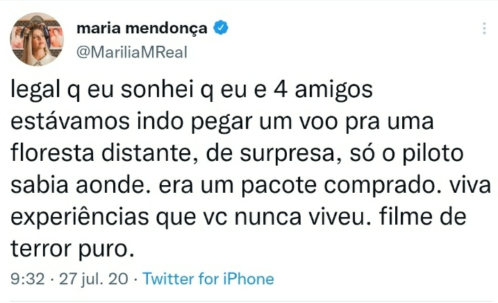Exatamente há dois anos, em 5 de novembro de 2019, a cantora Marília Mendonça publicou em uma rede social que "trocaria qualquer coisa para não ter que ficar pegando avião".