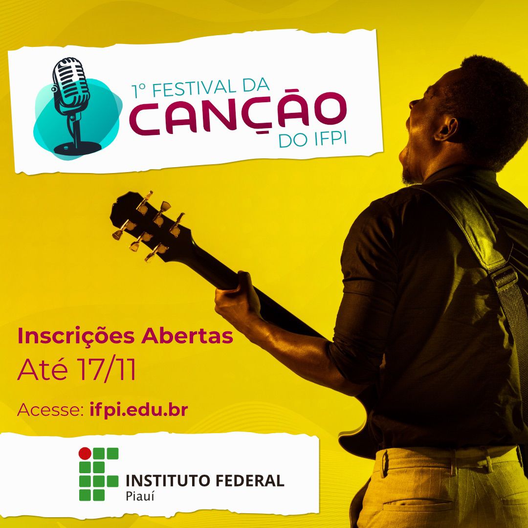 O Instituto Federal do Piauí (IFPI) dá início as inscrições para a primeira edição do Festival da Canção. O evento é voltado aos alunos da instituição. Os interessados tem até o dia 17 de novembro para se inscrever pela internet.
