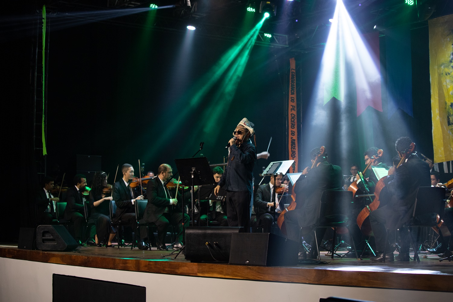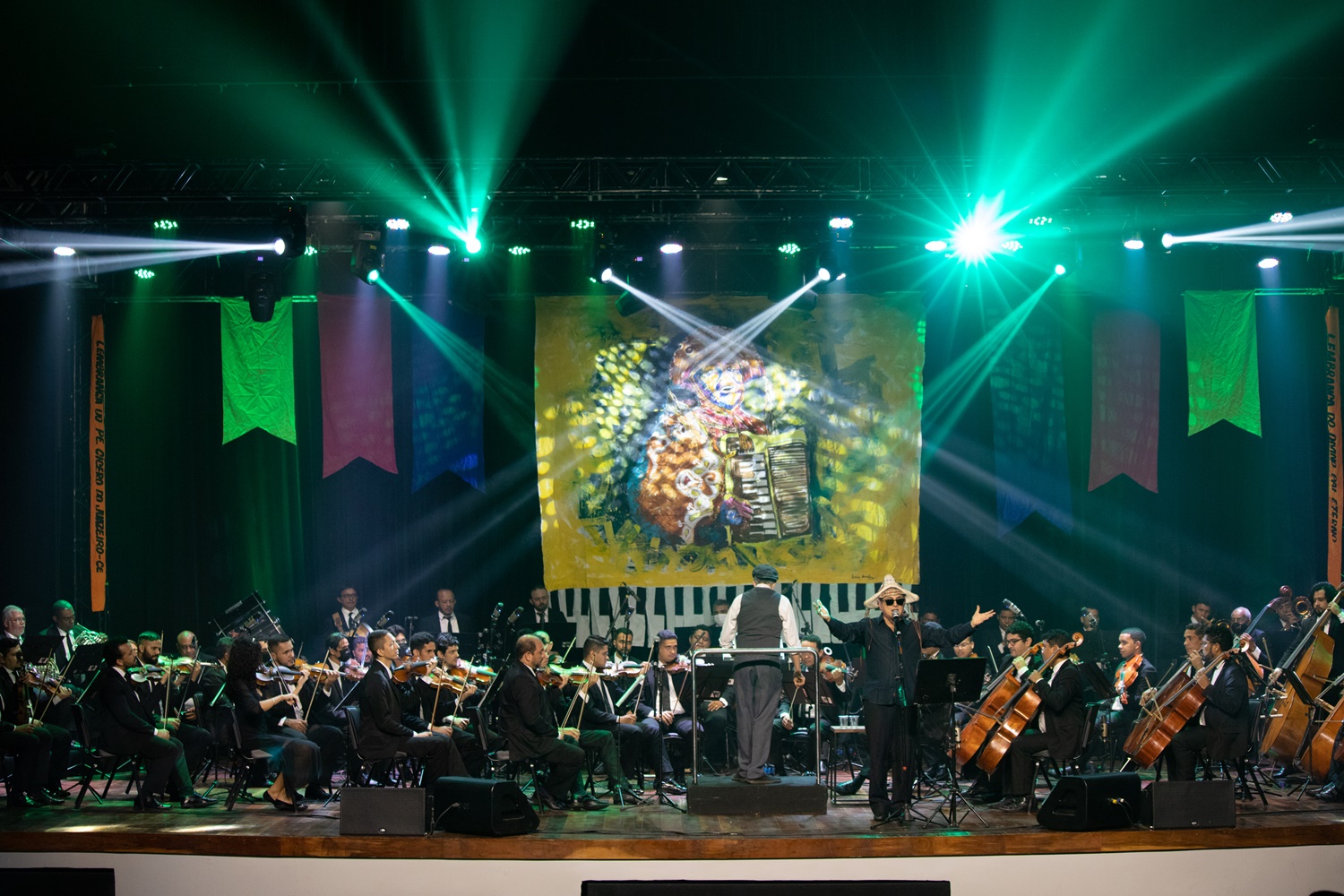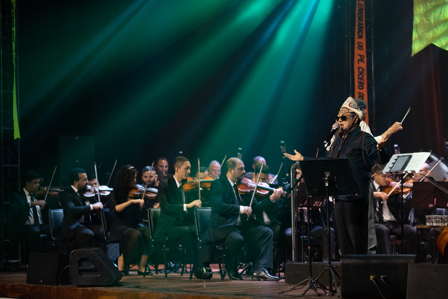 Com performances inovadoras de músicas históricas do Nordeste brasileiro, o artista João Cláudio Moreno interpretou Luiz Gonzaga, apelidado de 'Rei do Baião', junto com a Orquestra Sinfônica de Teresina (OST), no espetáculo Cantata Gonzaguiana que aconteceu na noite de domingo, 05 de junho no teatro do Centro de Convenções de Teresina.