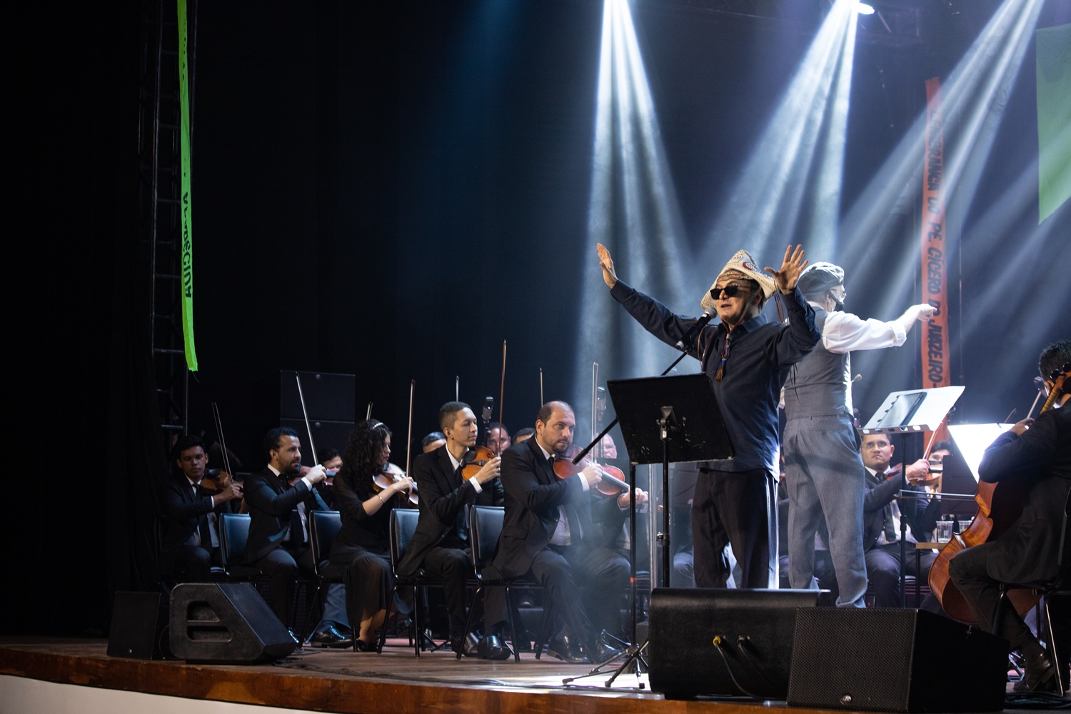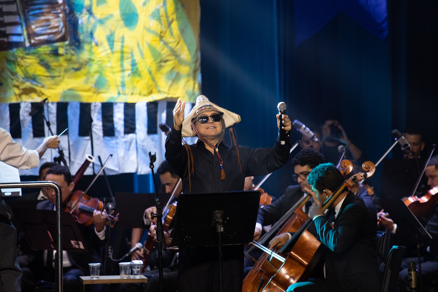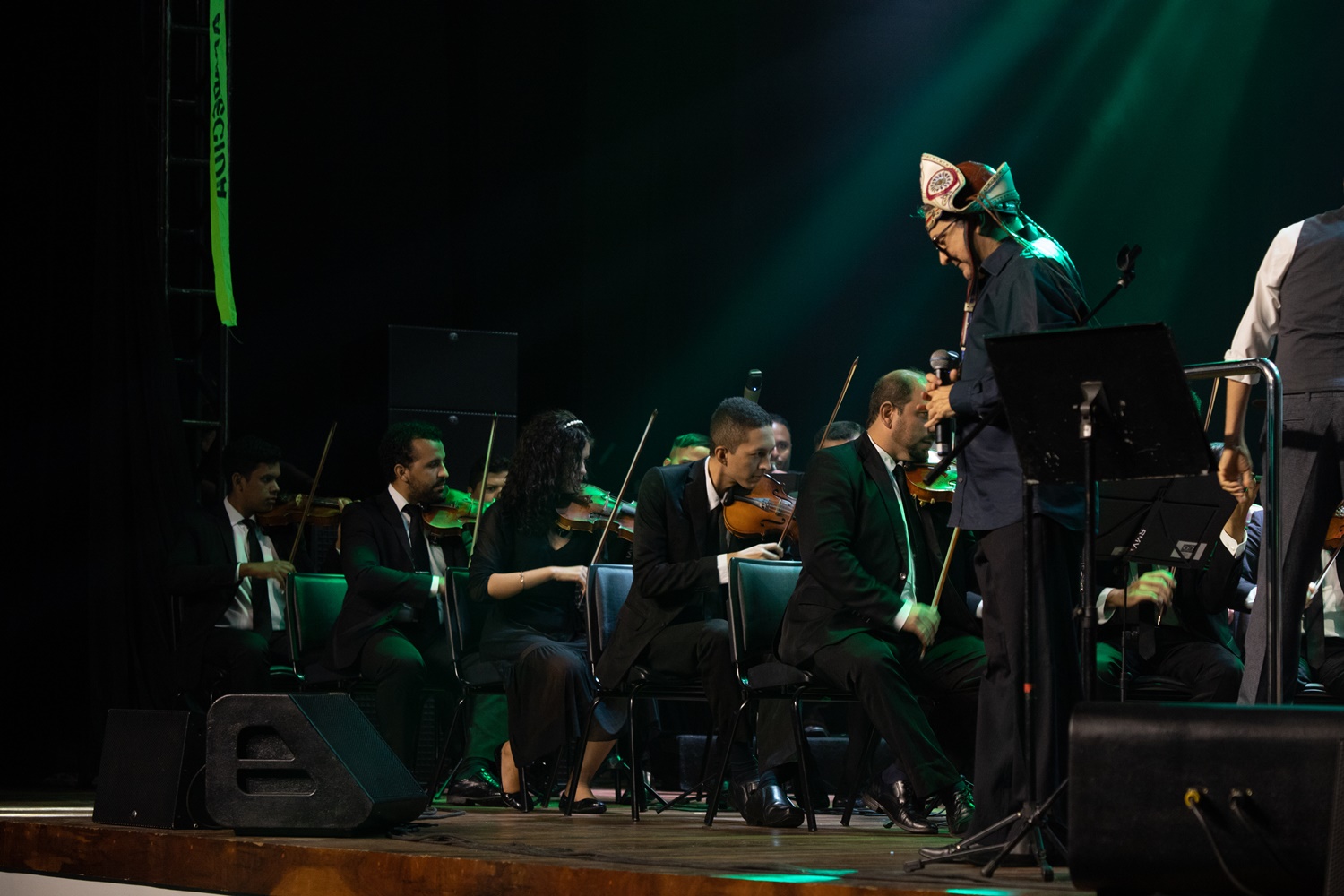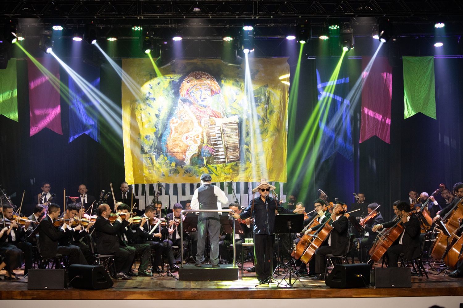 Com performances inovadoras de músicas históricas do Nordeste brasileiro, o artista João Cláudio Moreno interpretou Luiz Gonzaga, apelidado de 'Rei do Baião', junto com a Orquestra Sinfônica de Teresina (OST), no espetáculo Cantata Gonzaguiana que aconteceu na noite de domingo, 05 de junho no teatro do Centro de Convenções de Teresina.