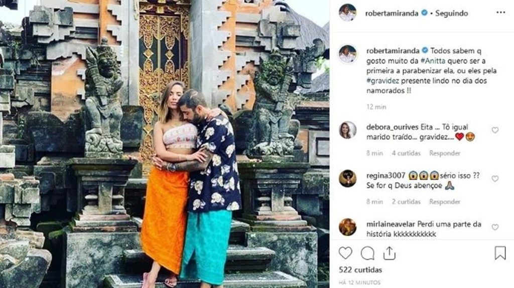 “Todos sabem que gosto muito da Anitta quero ser a primeira a parabenizar ‘ela’, ou eles pela gravidez, presente lindo no Dia dos Namorados!”, disse a cantora, para a intérprete de Onda Diferente.