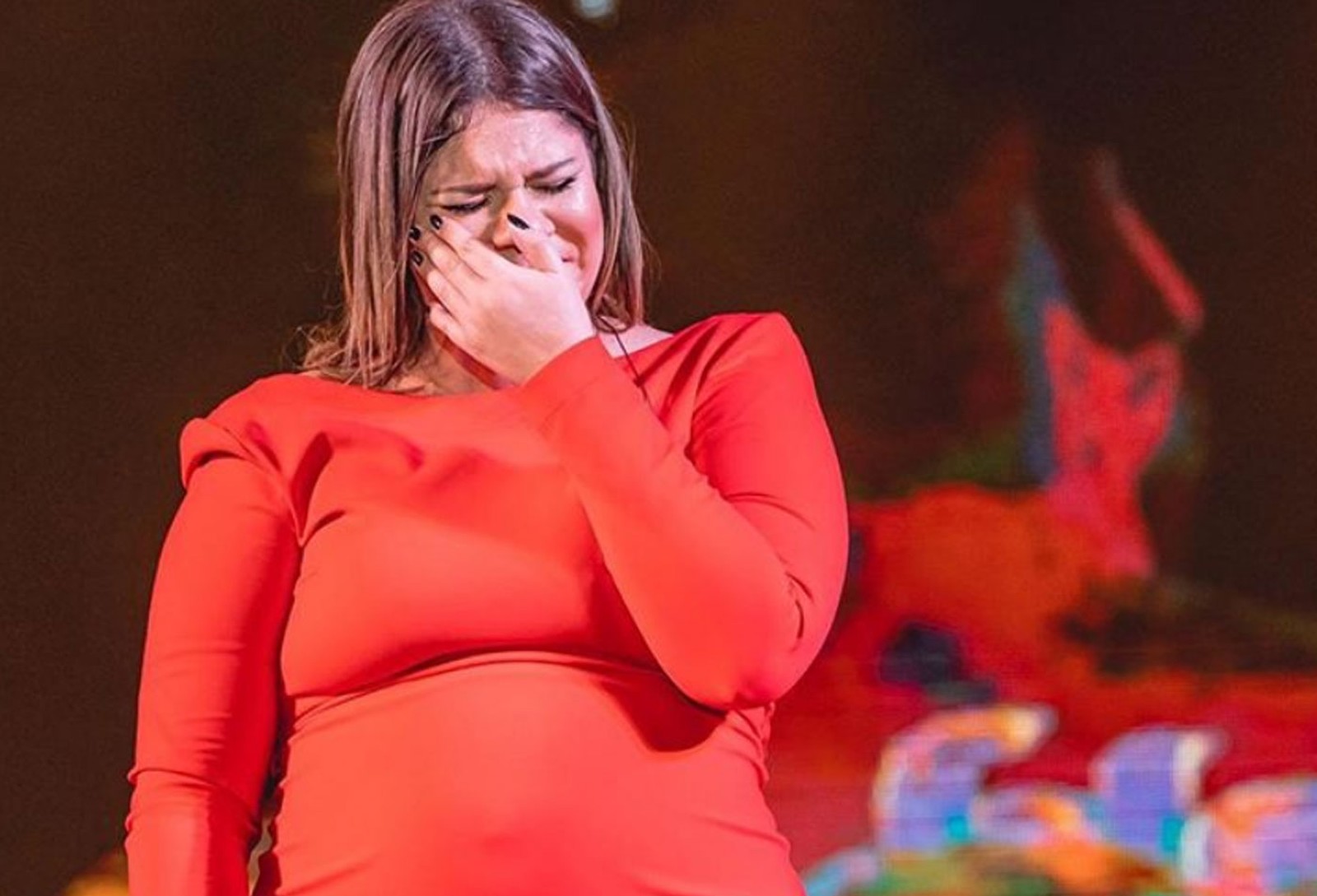Marília Mendonça chora no palco antes de falar de pausa na carreira para se dedicar à maternidade — Foto: Divulgação/Instagram da cantora.