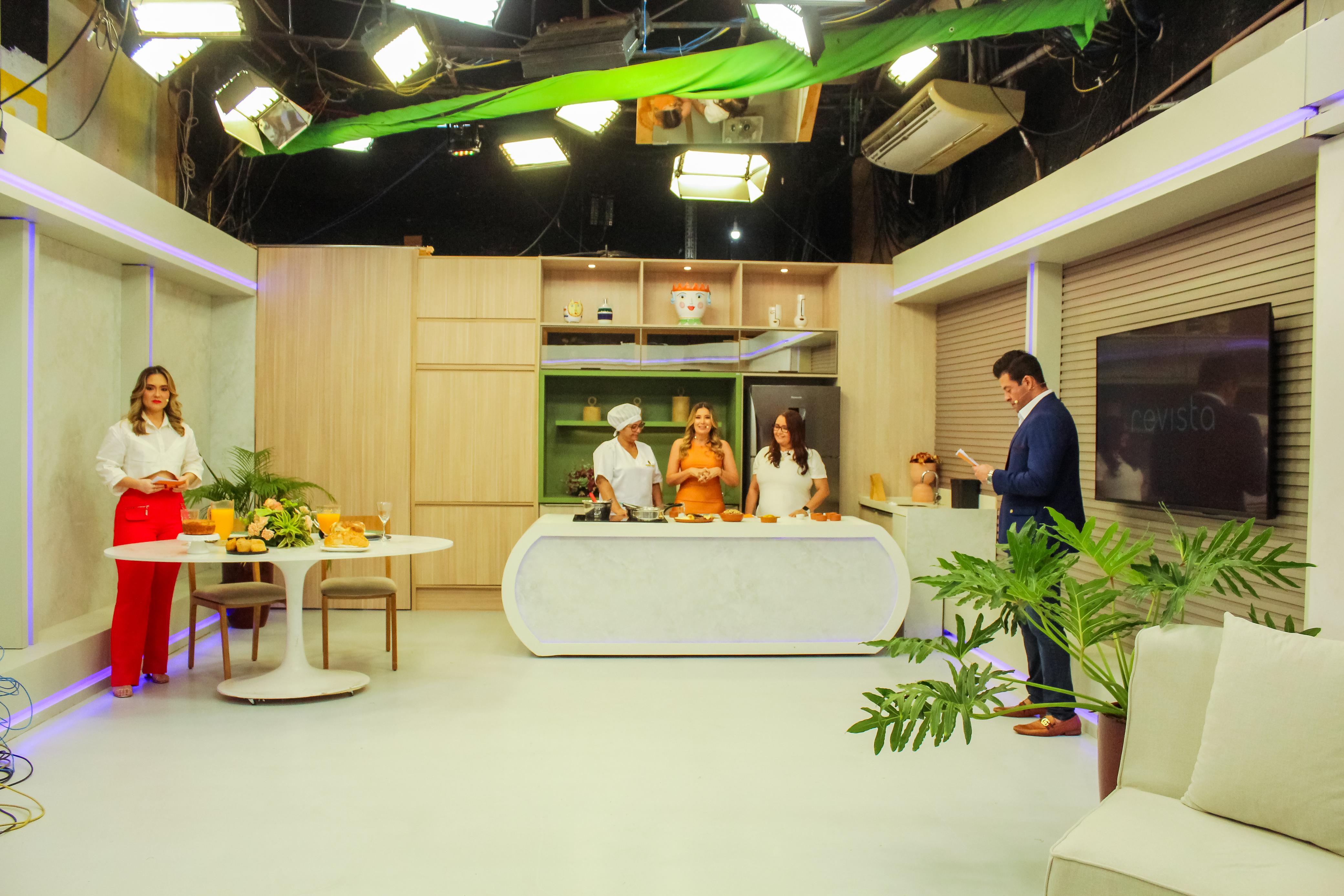 O programa Revista estreou hoje (1º) em um novo horário, agora sob o comando de Rachel Nogueira, Renato Montanha e Karla Berger. O trio anima as manhãs dos espectadores da TV Meio com informação, jornalismo e culinária.