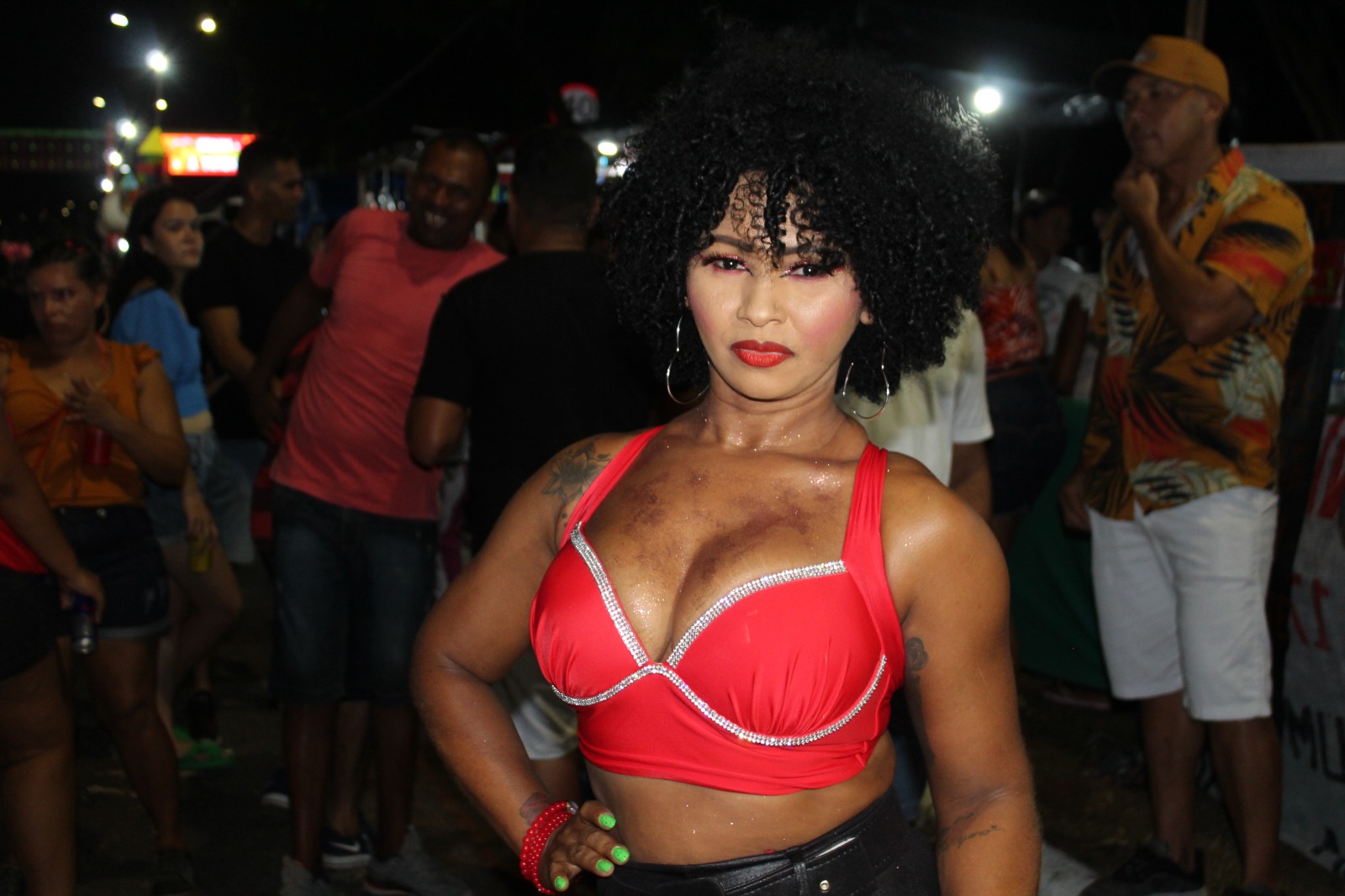 A dubladora Jacky Docinho também apostou no vermelho. “Eu amo vermelho e vim mesmo para chamar atenção. O Zé Pereira de Timon é tradição”, considera.